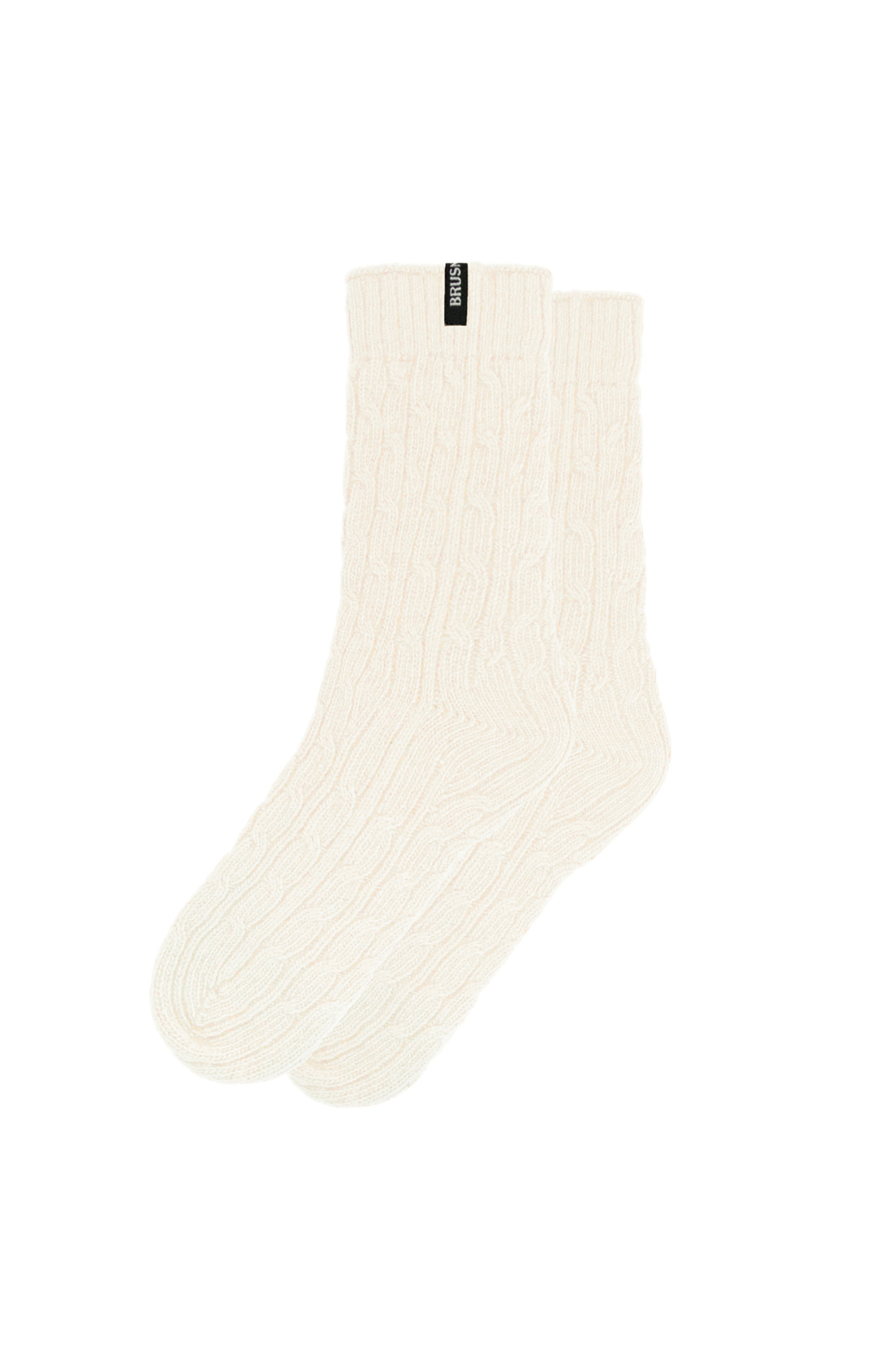Трикотажные носки из кашемира и шерсти. Модель с фактурной вязкой косами, эластичной резинкой и брендированным ярлыком.