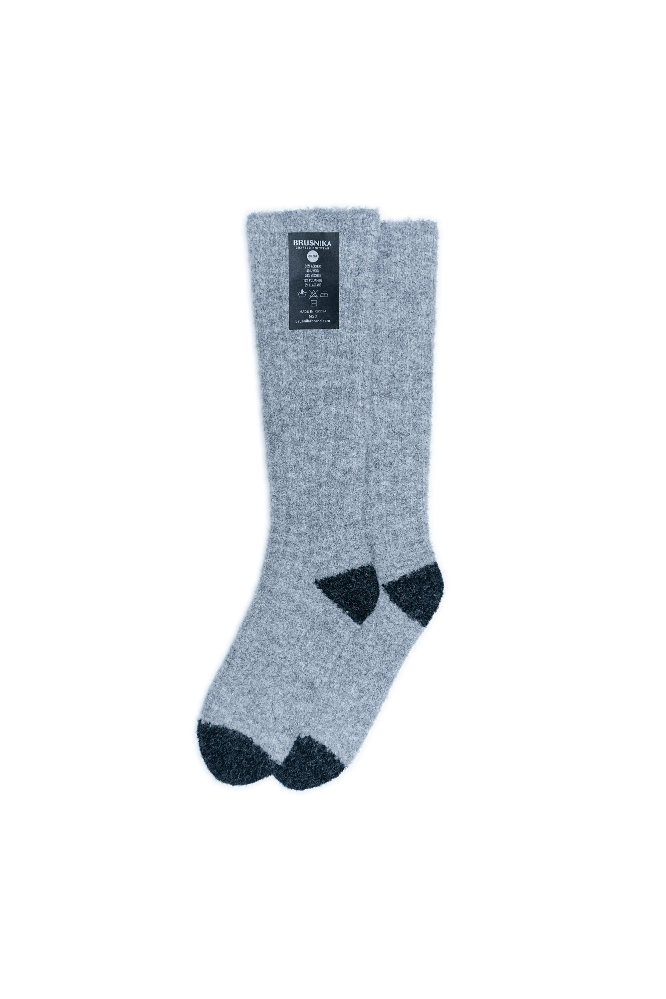 Высокие трикотажные носки из акрила и шерсти в рубчик. Модель с ослабленной резинкой, контрастными носком и пяточкой.