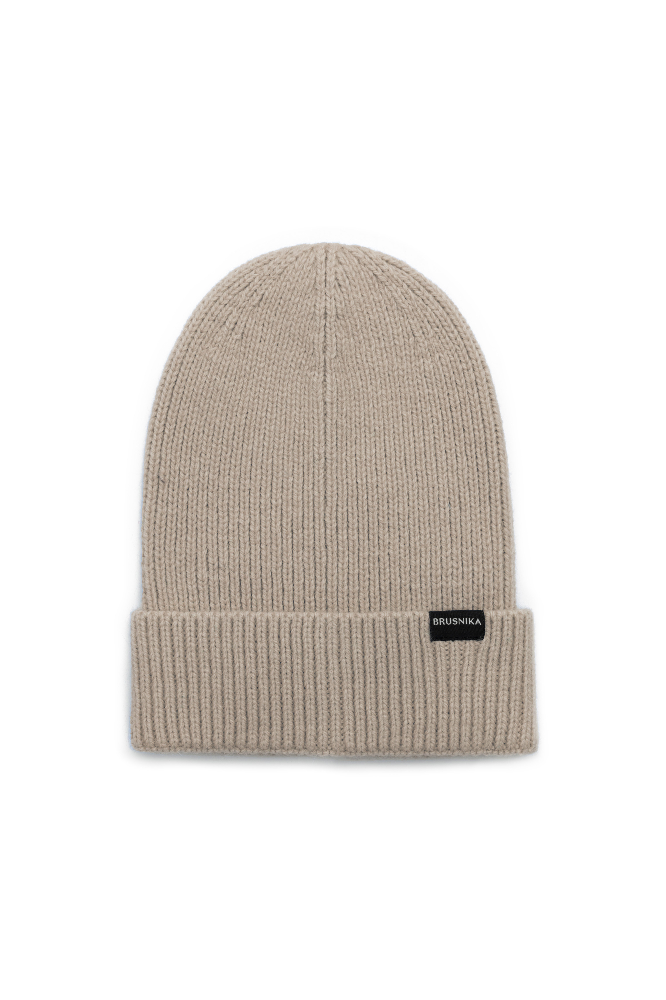 Трикотажная шапка из шерсти альпака. Модель с отворотом и брендированным ярлыком.