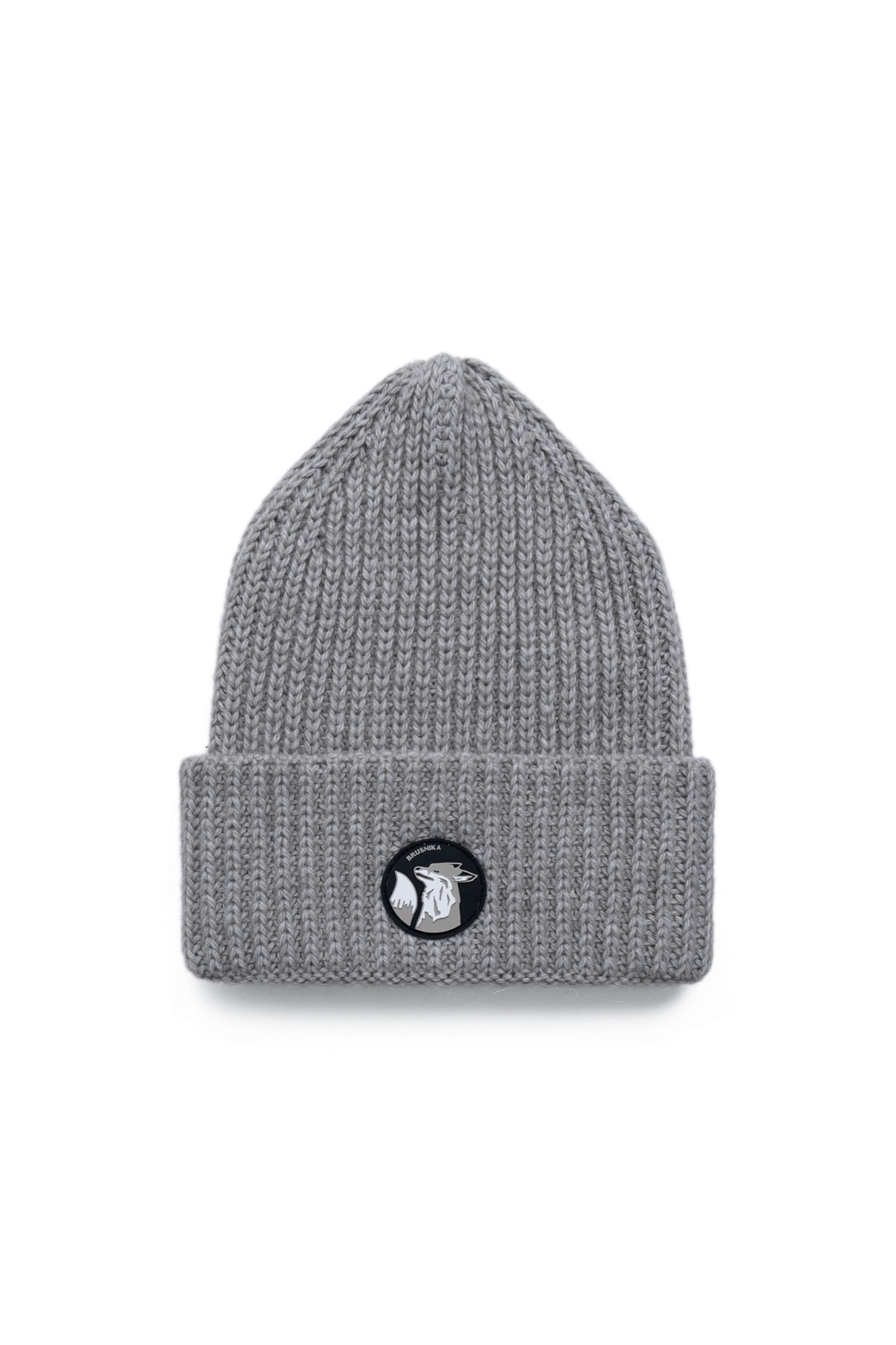Шапка из шерсти альпака с отворотом и логотипом бренда.