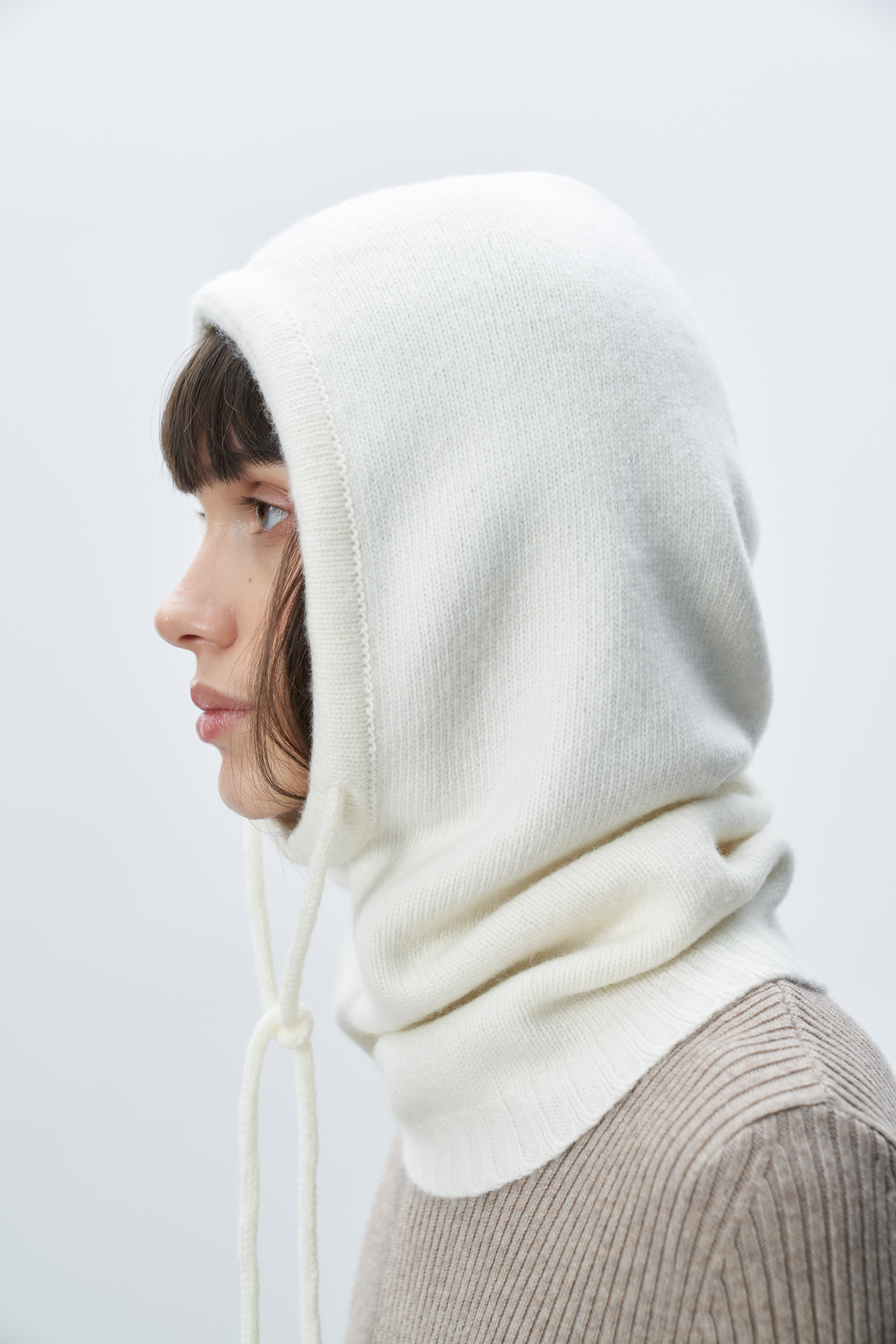 Трикотажный капор на кулиске из шерсти и кашемира. Закругленные края вокруг выреза.