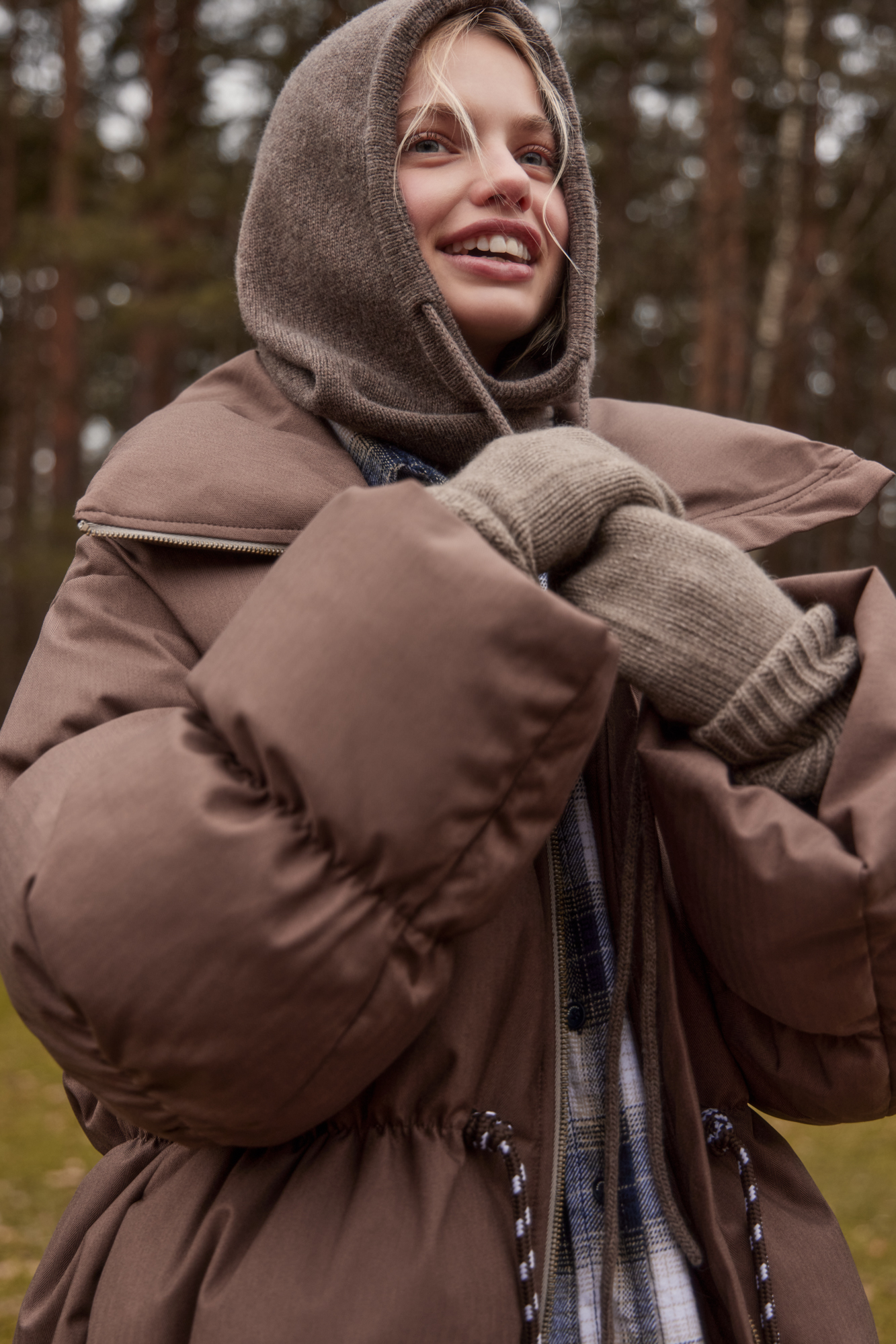 Трикотажный капор на кулиске из шерсти и кашемира.
