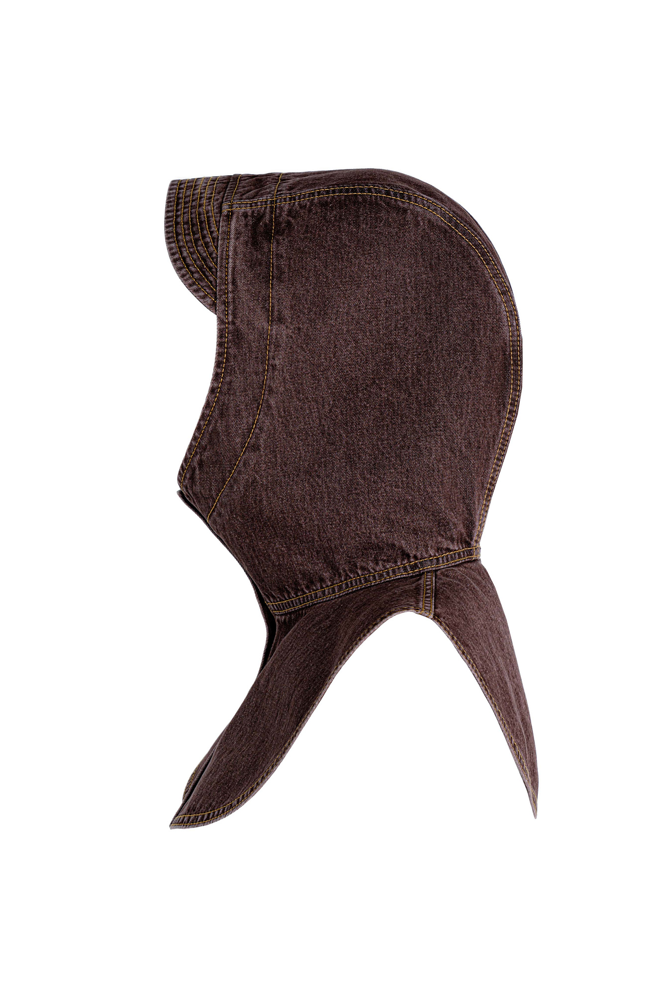 Джинсовый капюшон из 100% хлопка. Изделие выполнено с брендированным ярлыком сзади и застежкой на кнопки.