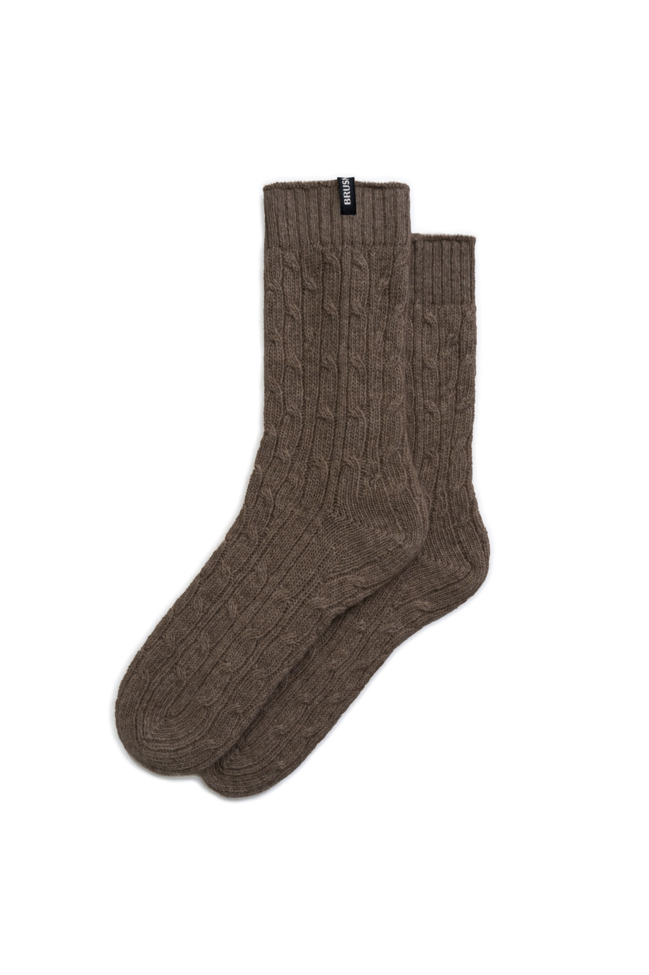 Трикотажные носки из кашемира и шерсти. Модель с фактурной вязкой косами, эластичной резинкой и брендированным ярлыком.