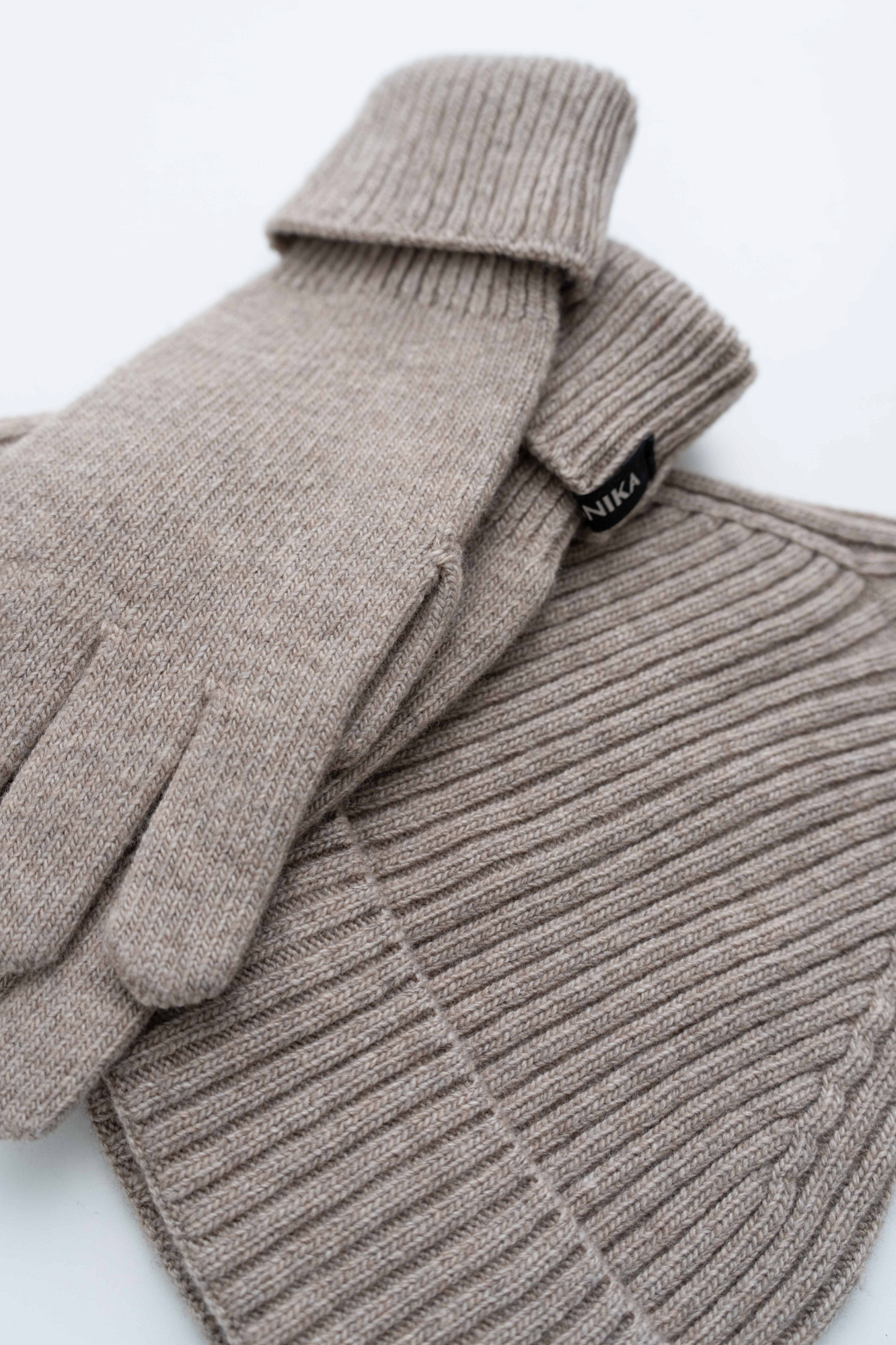 Трикотажные перчатки из кашемира и шерсти. Модель с длинными манжетами и брендированным ярлыком.