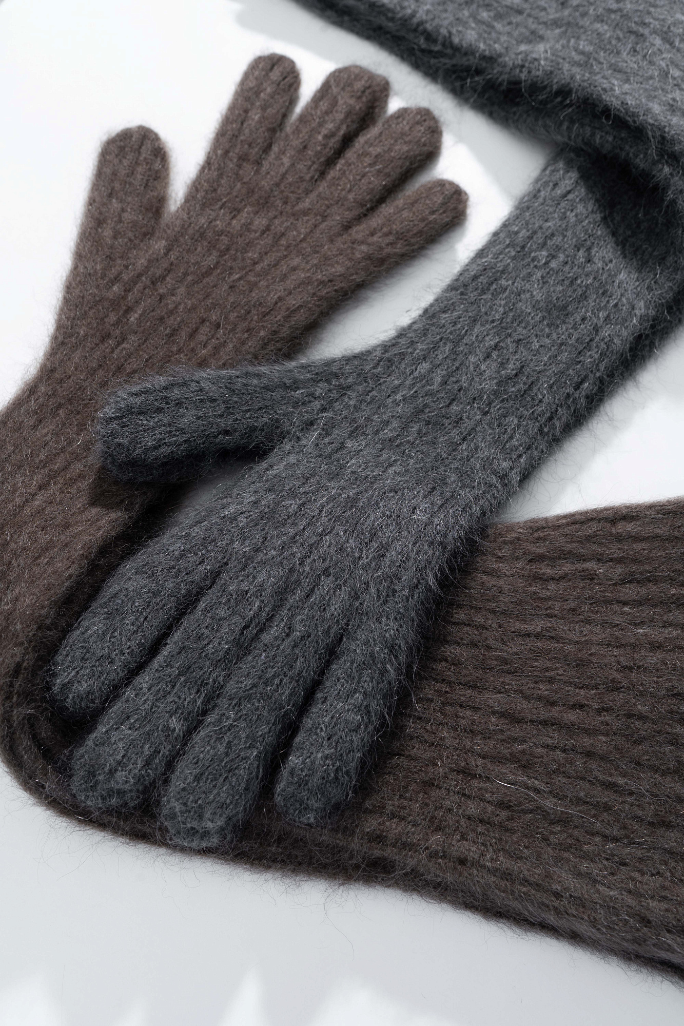 Длинные трикотажные перчатки из 1005 шерсти яка. Модель выполнена в широкий рубчик.