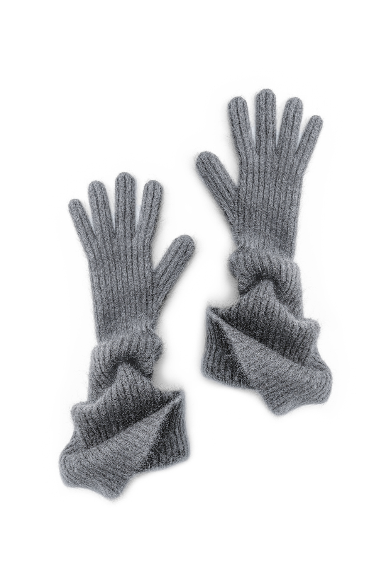 Длинные перчатки из пуха лисы. Модель выполнена в широкий рубчик.