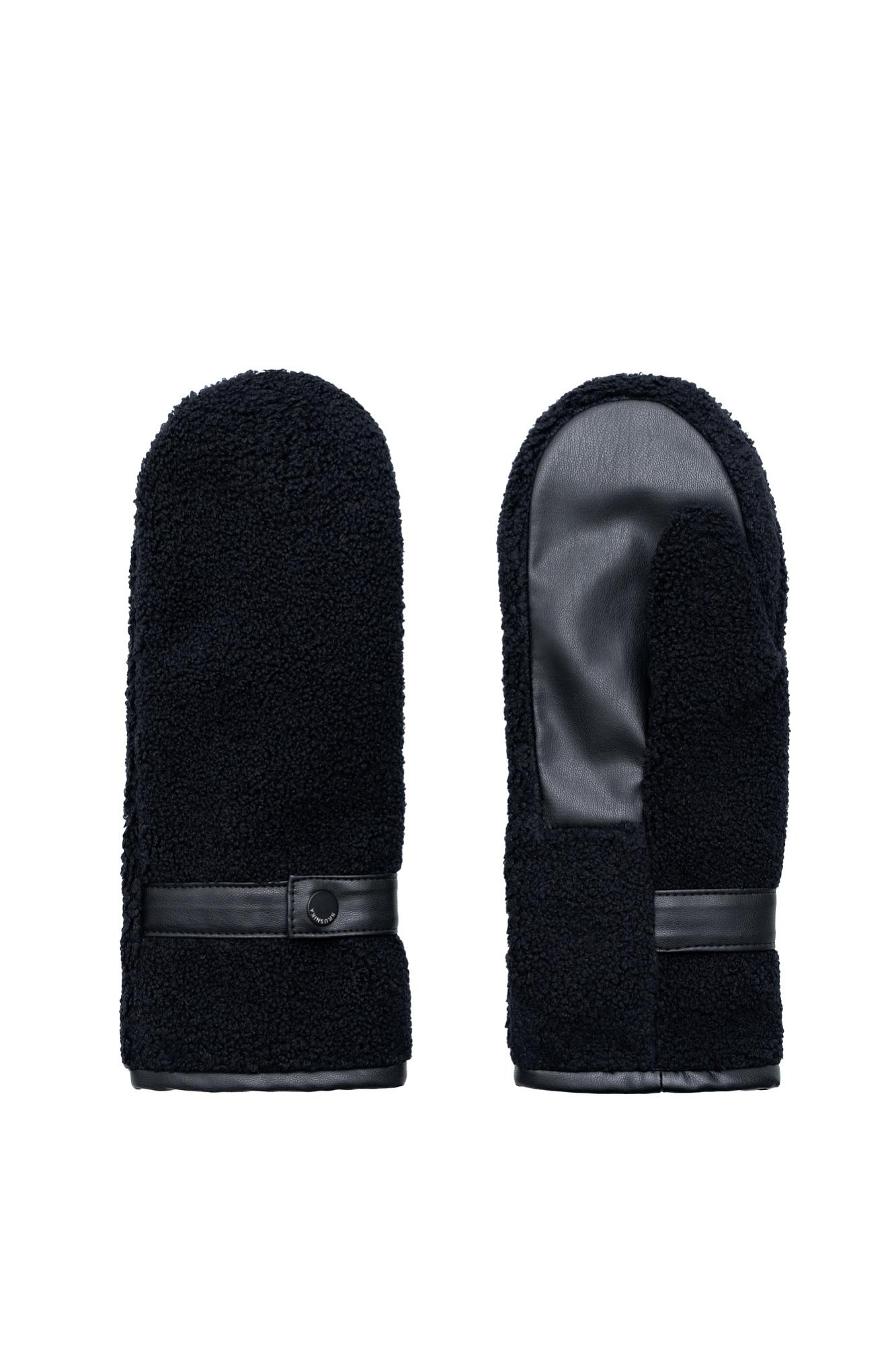 Варежки из экомеха с вставкой из экокожи и застежкой на кнопку.