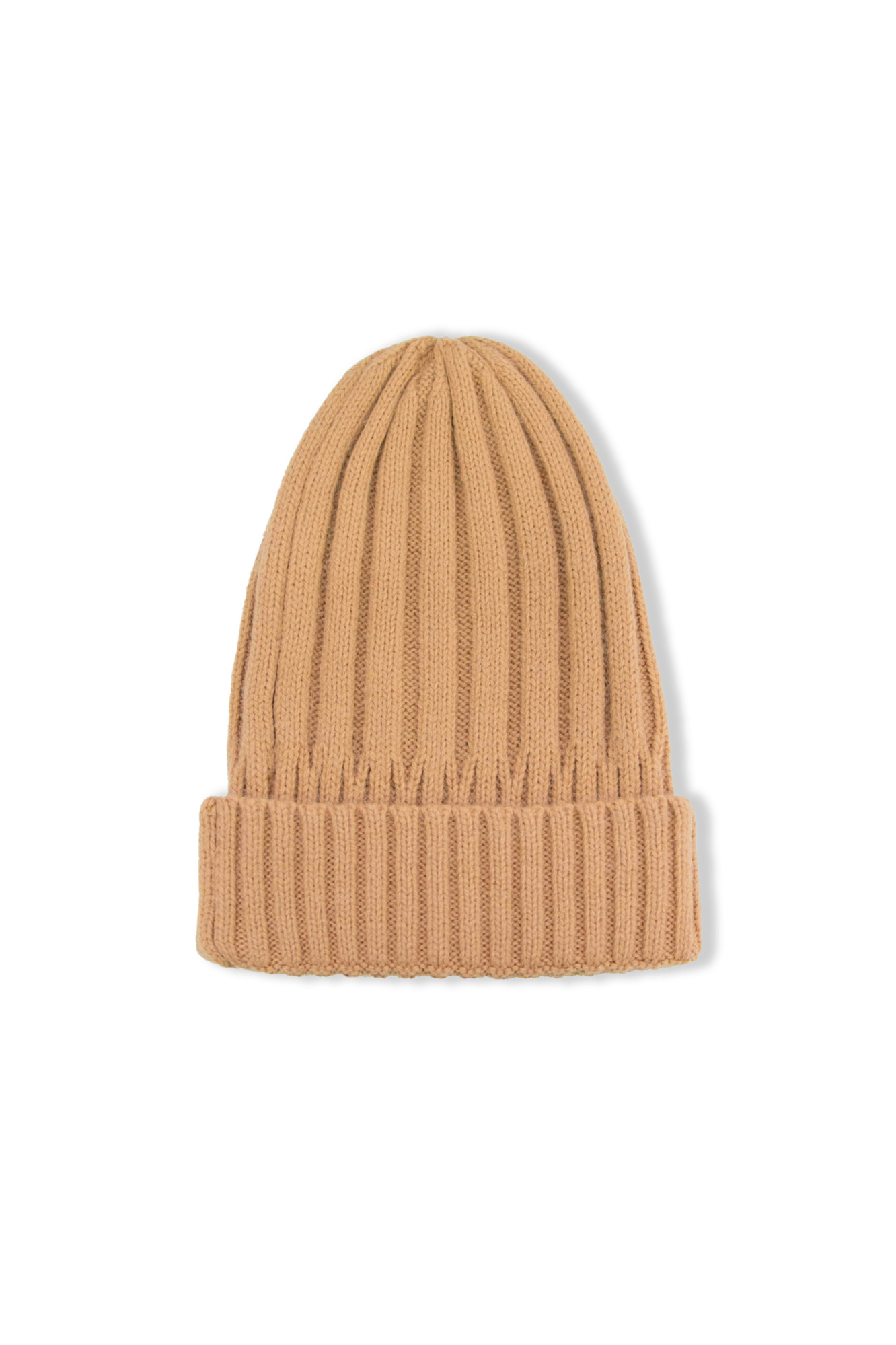 Трикотажная шапка в широкий рубчик с подворотом с добавлением шерсти альпака.