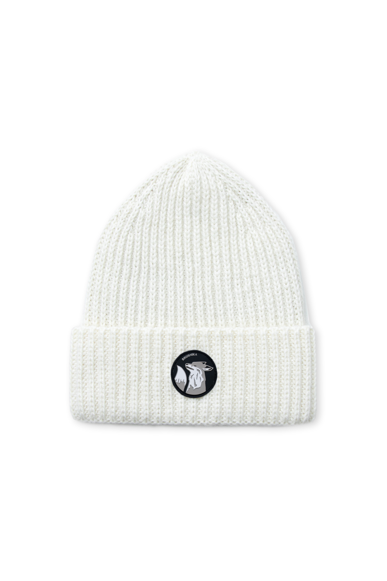 Шапка из шерсти альпака с отворотом и логотипом бренда.