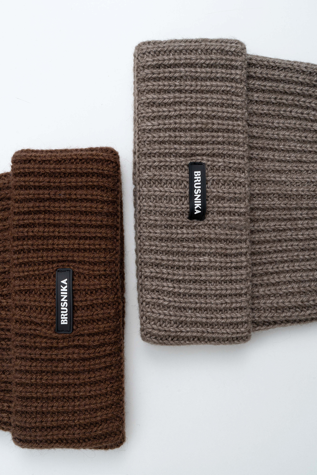 Шапка из шерсти альпака с отворотом и брендированным значком.