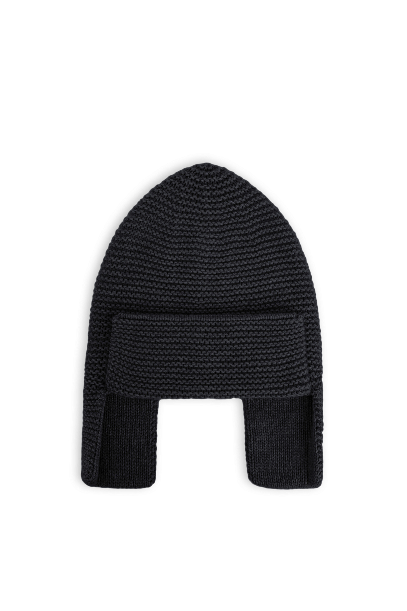 Трикотажная шапка-ушанка с широким отворотом. Модель выполнена из пряжи с добавлением шерсти альпака.