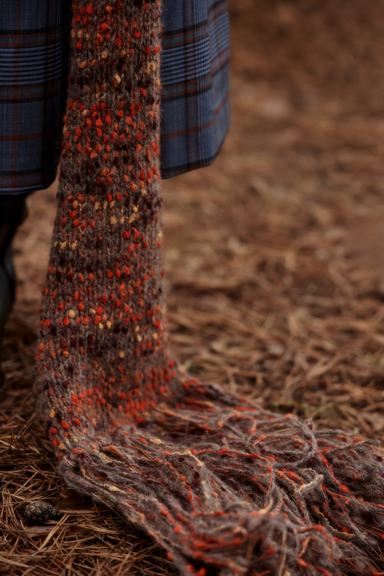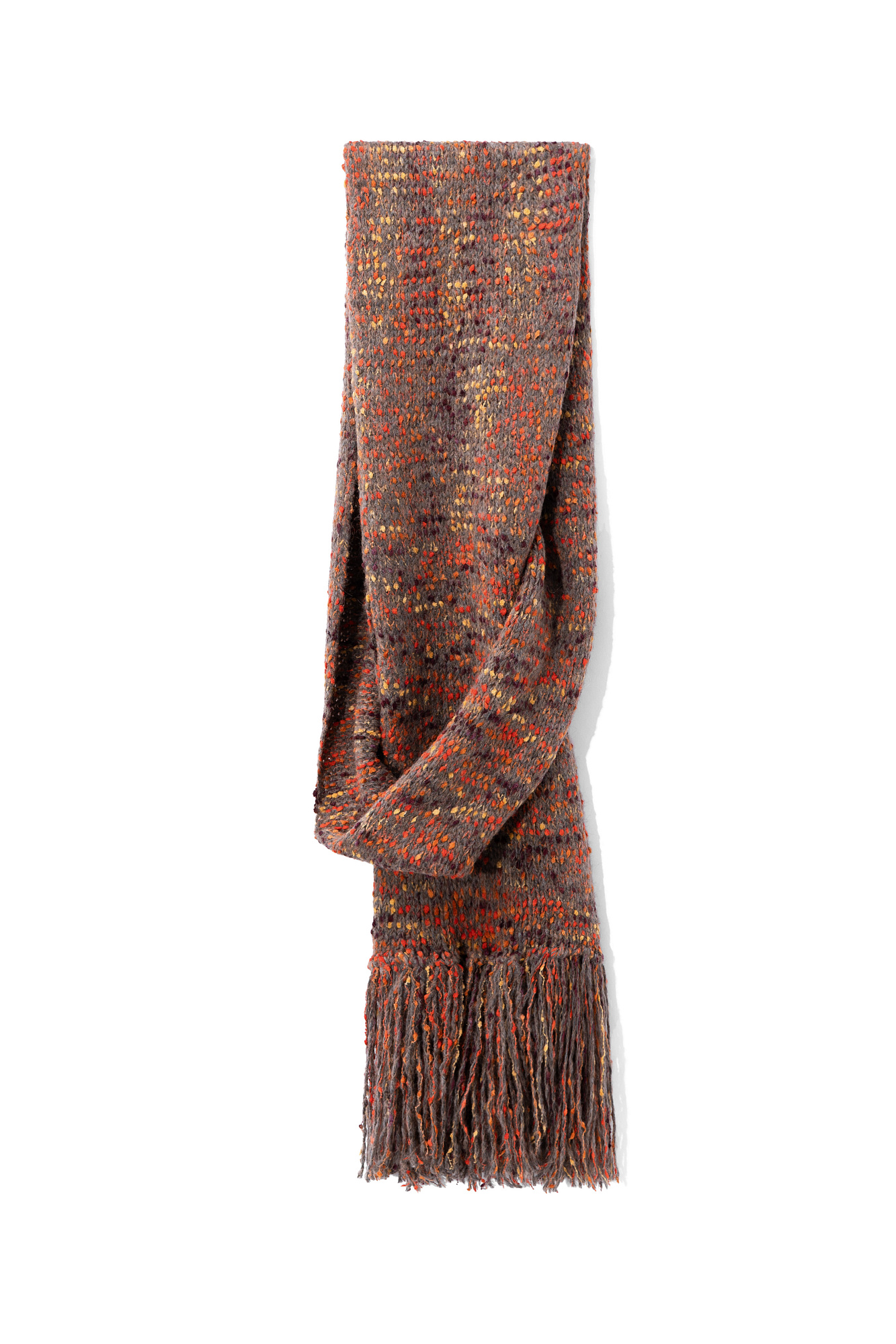 Трикотажный шарф из буклированной пряжи с длинной бахромой.
