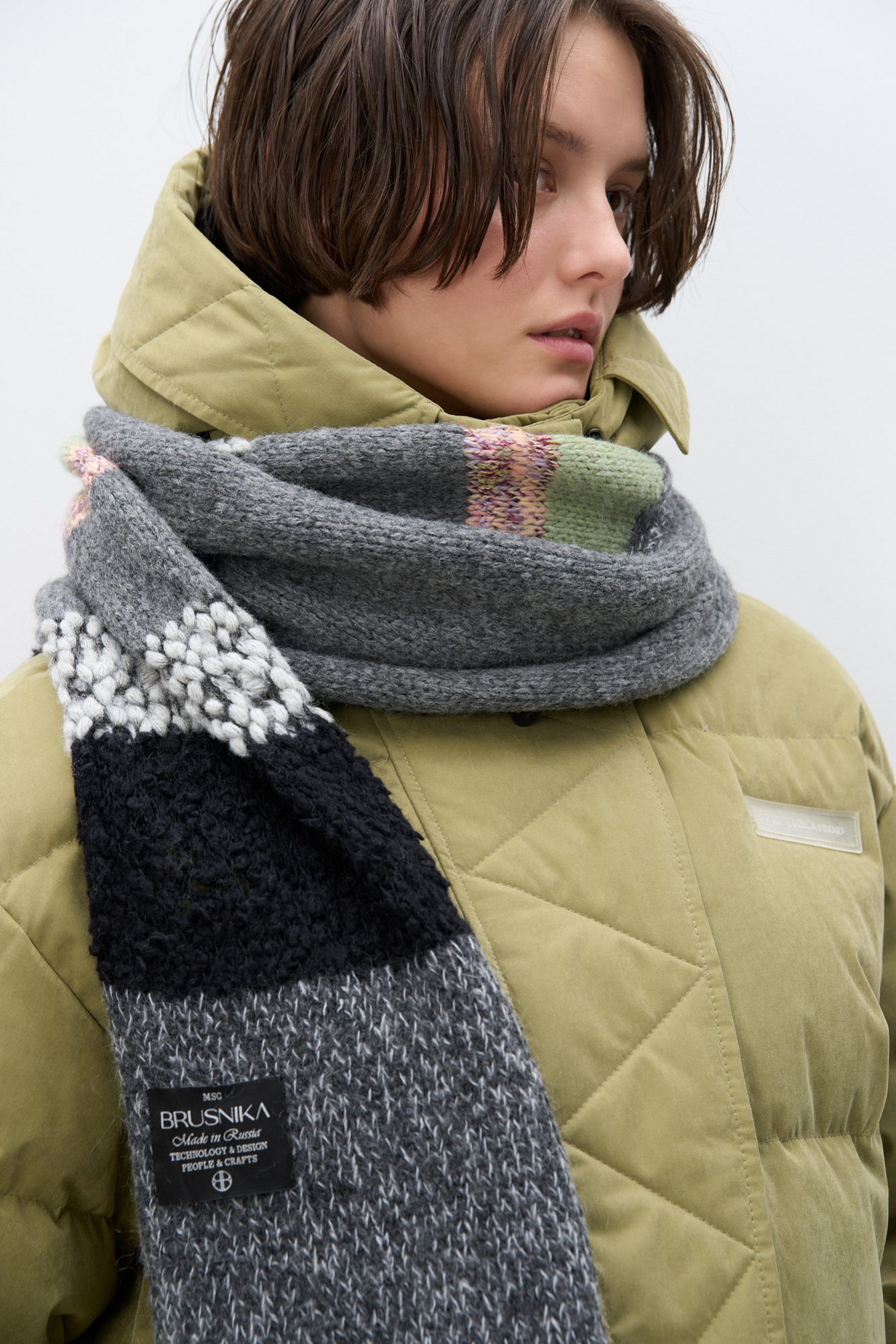Шарф из шерсти альпака суперфайн и мериноса экстрафайн. Модель выполнена из пряжи с разной текстурой и декорирована длинной бахромой.