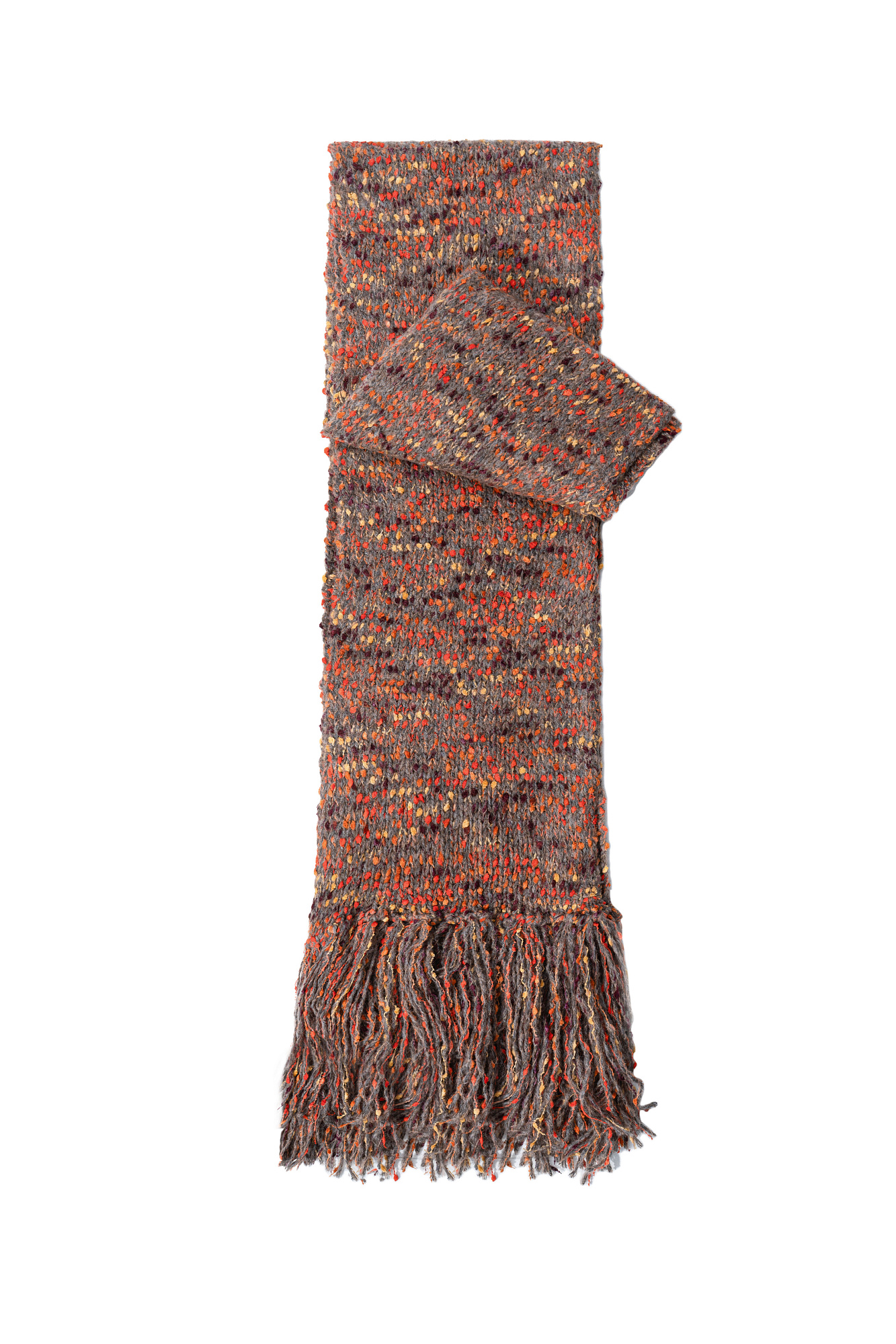 Трикотажный шарф из буклированной пряжи с длинной бахромой.