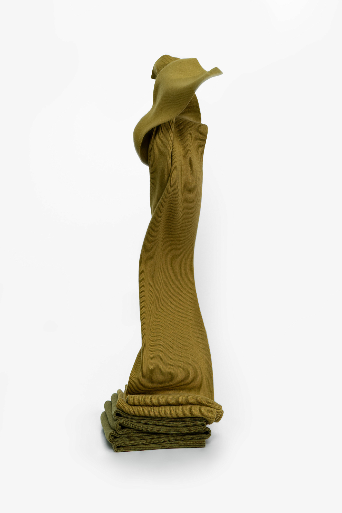 Длинный трикотажный шарф из кашемира и шерсти. Изделие выполнено в тонкий рубчик.