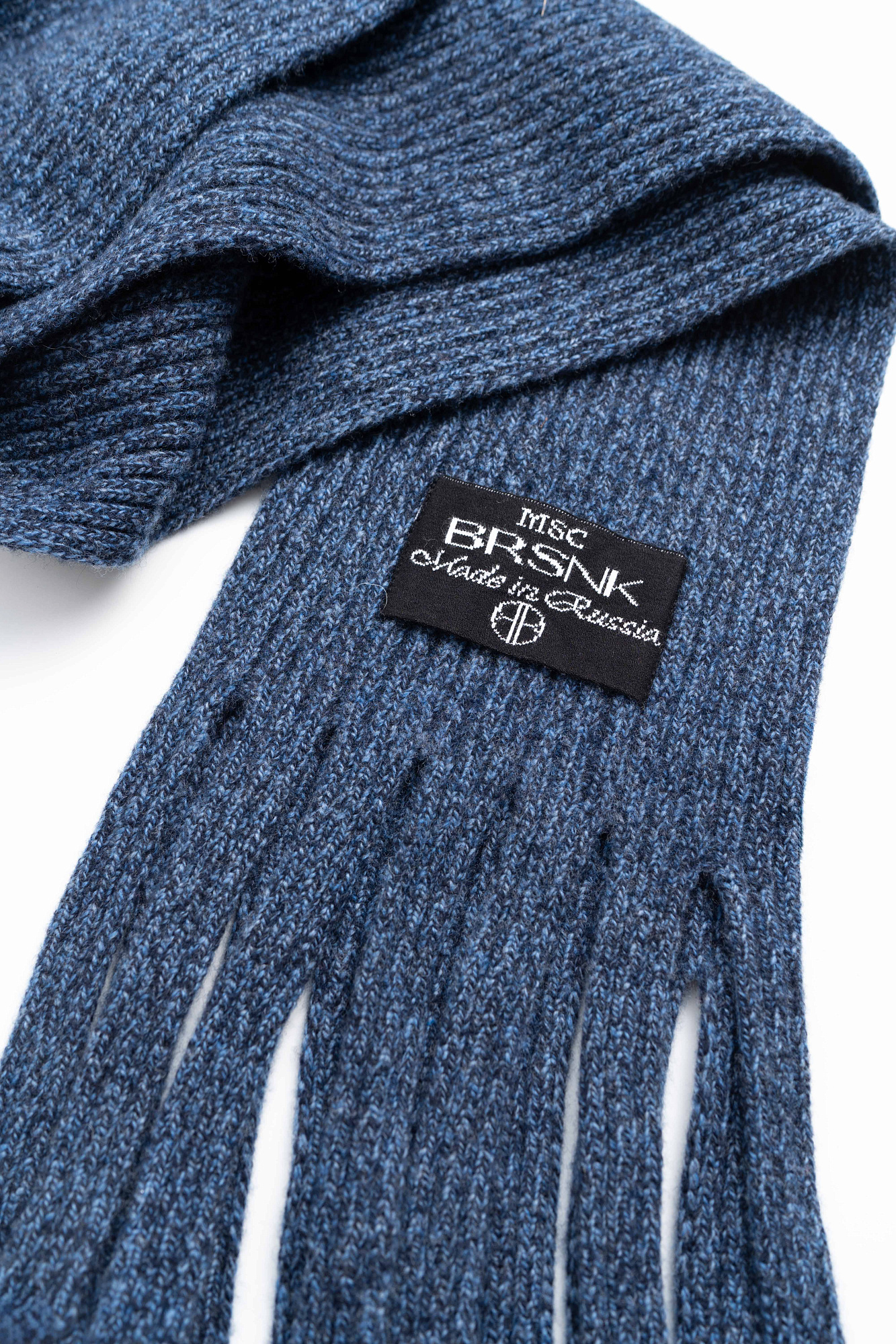 Трикотажный шарф в рубчик. Модель с бахромой и брендированным ярлыком.