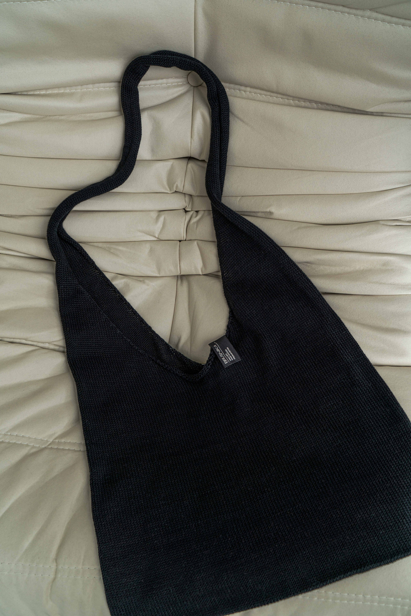 Трикотажная сумка через плечо с брендированным ярлыком.