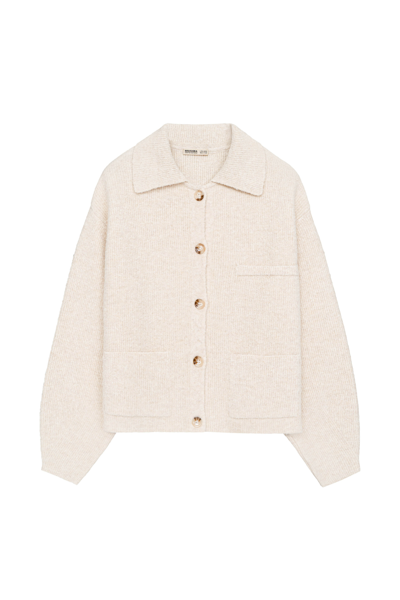 Трикотажный бомбер из смесовой шерсти. Модель свободного силуэта с накладными карманами и спущенной линией плеча. Застежка на пуговицы.