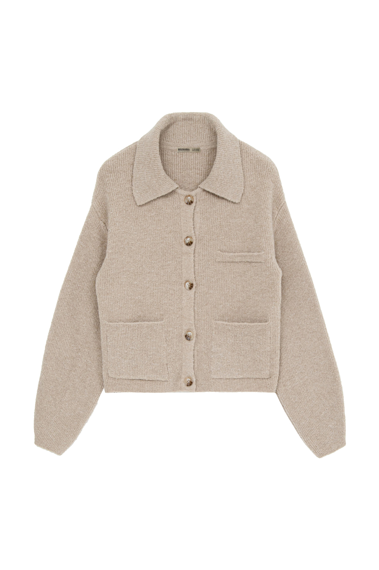 Трикотажный бомбер из смесовой шерсти. Модель свободного силуэта с накладными карманами и спущенной линией плеча. Застежка на пуговицы.