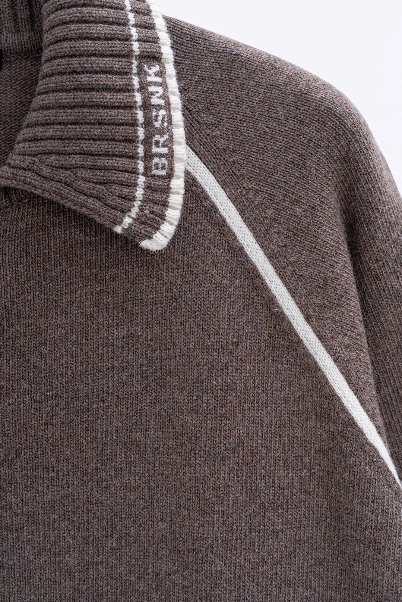 Трикотажный бомбер из кашемира и шерсти. Модель свободного силуэта, со спущенной линией плеч и отложным воротником, дополненным брендированным жаккардом. Боковые карманы, застежка на молнию.