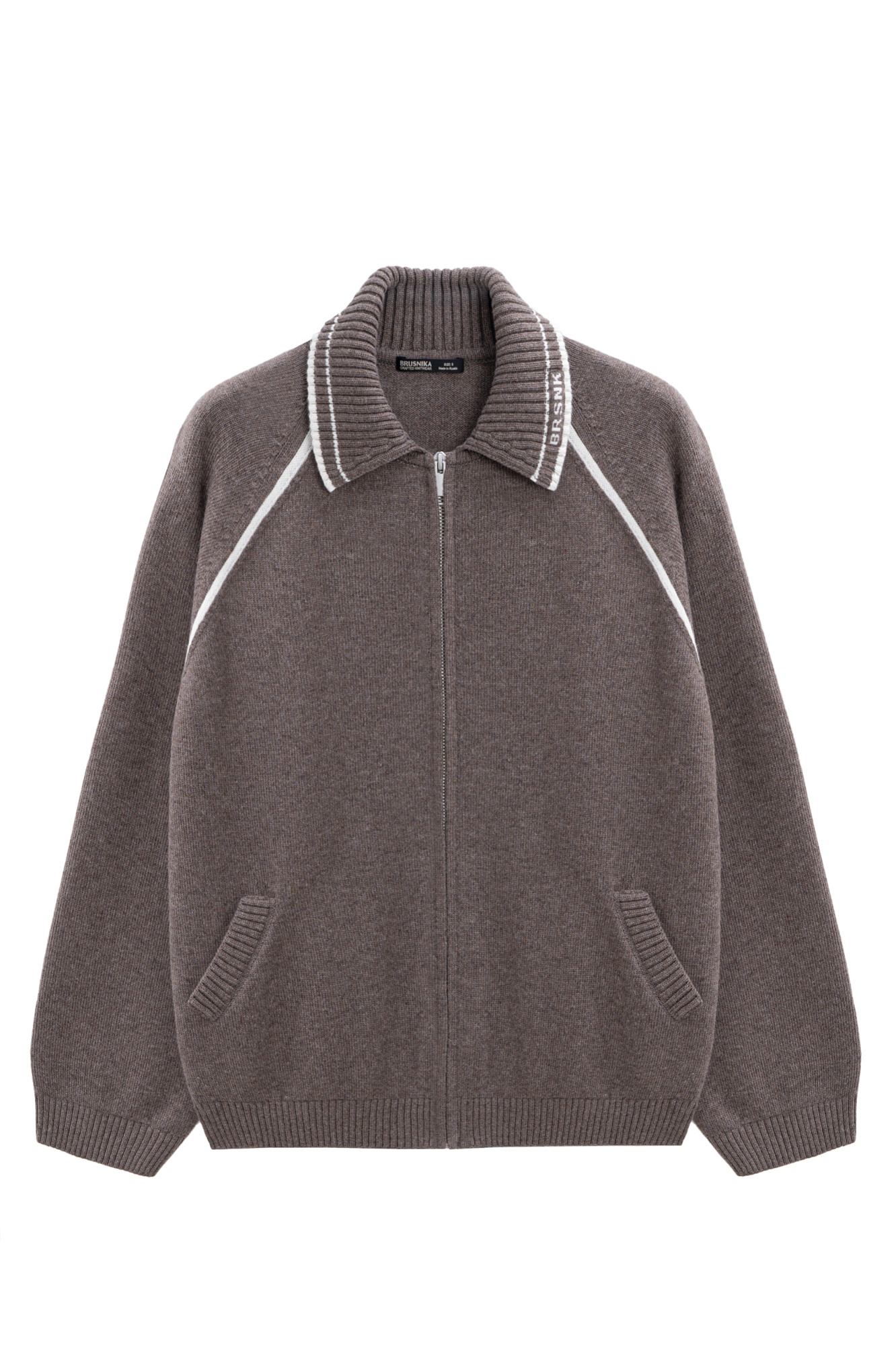 Трикотажный бомбер из кашемира и шерсти. Модель свободного силуэта с рукавом реглан и отложным воротником, дополненным брендированным жаккардом. Боковые карманы, застежка на молнию. Низ изделия и манжеты рукавов выполнены в эластичный рубчик.