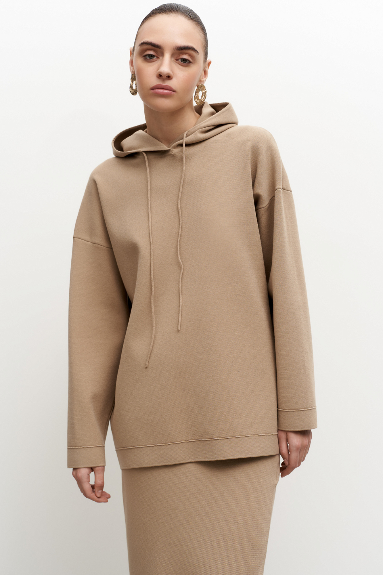 Трикотажное худи из мягкой вискозы. Модель свободного силуэта с капюшоном на кулиске и спущенной линией плеч.