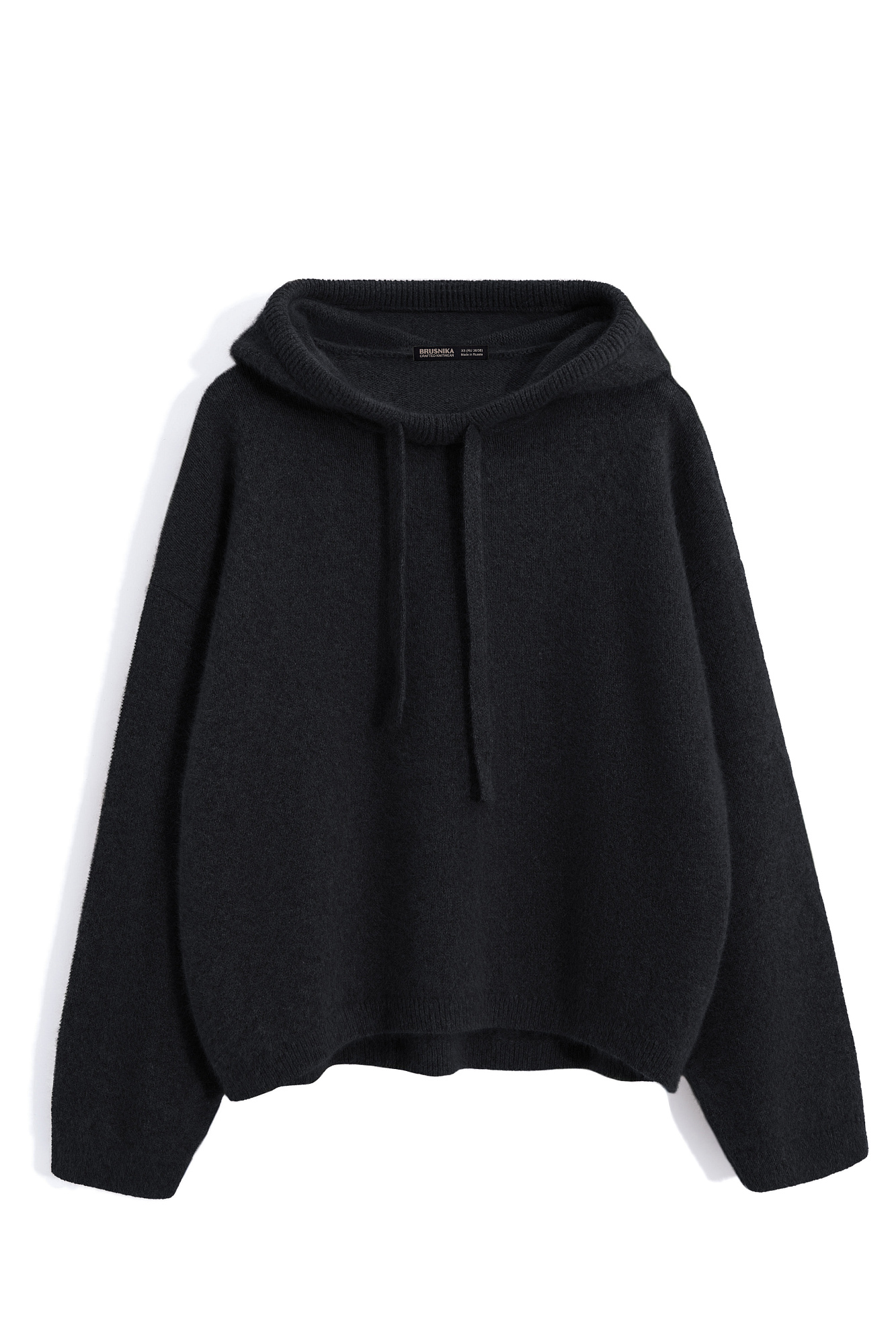 Трикотажное худи из пуха лисы. Модель свободного силуэта с капюшоном и спущенной линией плеча.