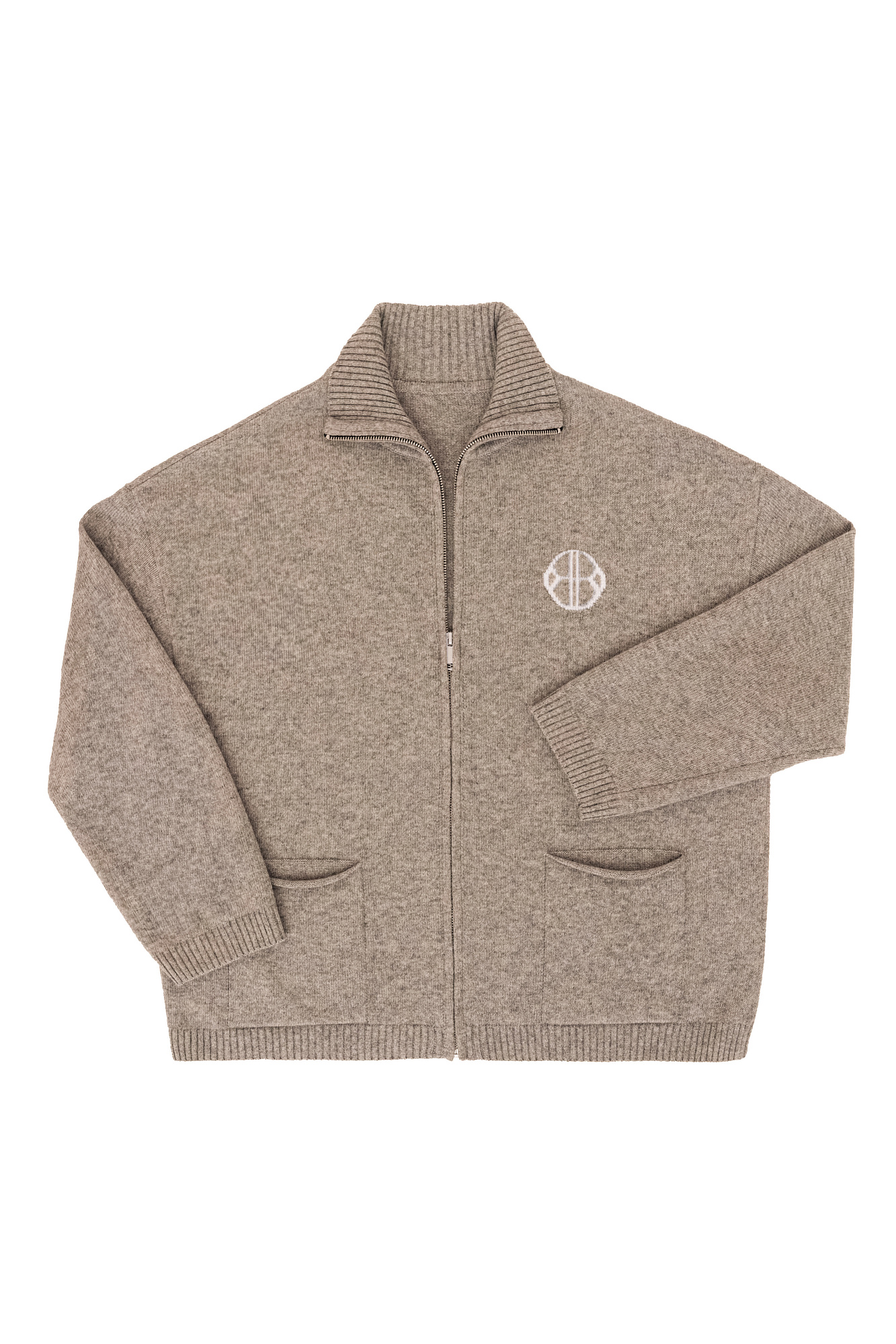 Трикотажный бомбер в спортивном стиле. Модель свободного силуэта со спущенной линией плеча и боковыми карманами. Вышивка логотипа бренда на груди. Застежка на молнию.