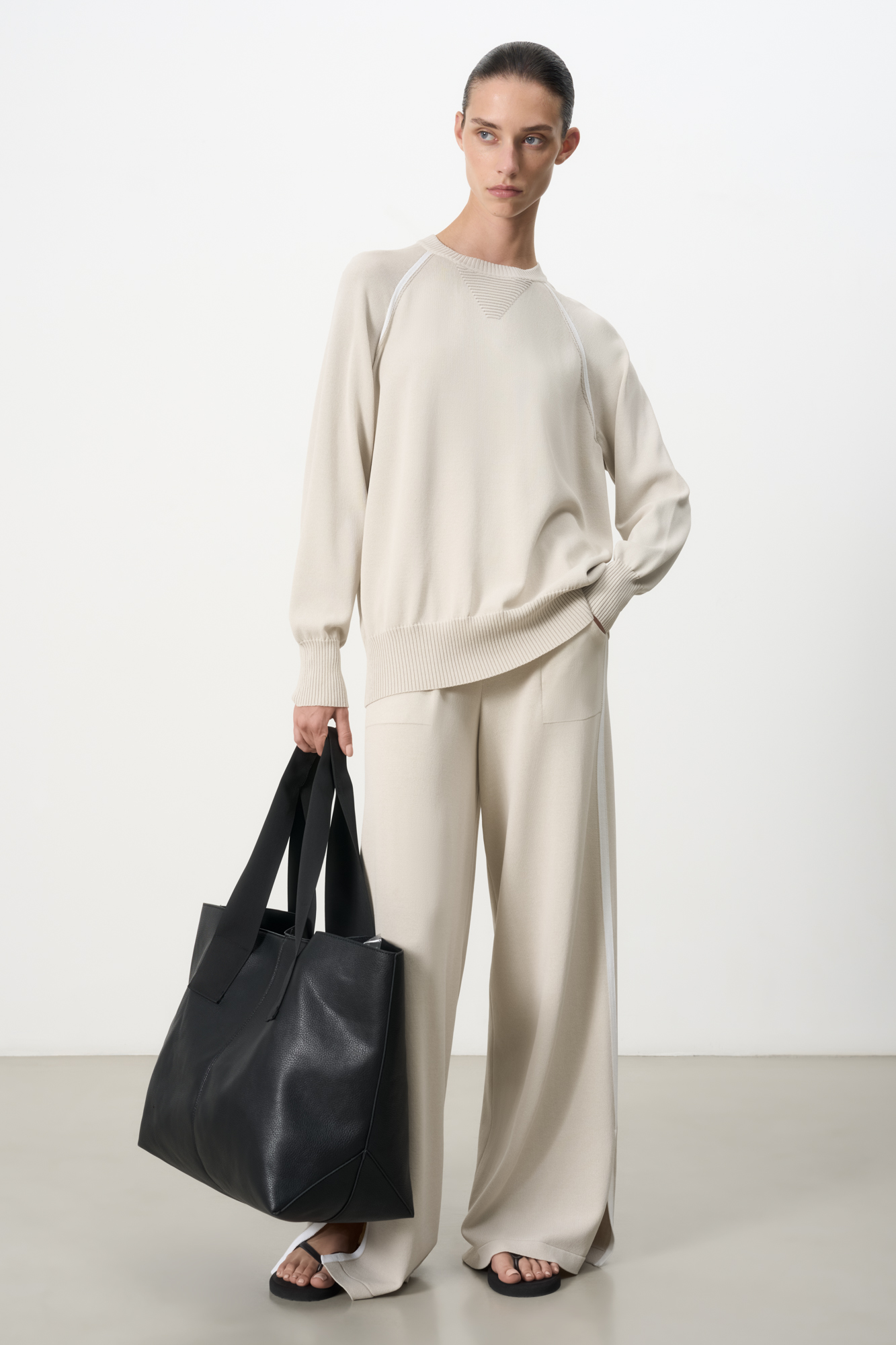 Широкие спортивный брюки с лампасами и накладными карманами спереди.