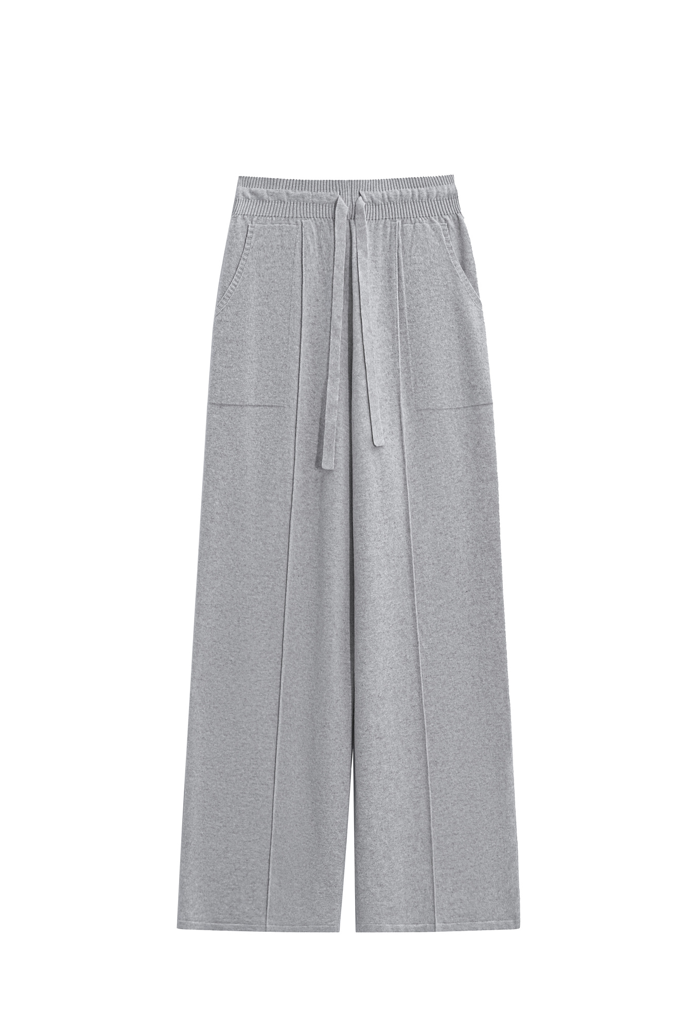 Трикотажные брюки из смесовой шерсти. Модель свободного силуэта со средней посадкой, боковыми карманами и стрелками. Эластичный пояс на кулиске в рубчик.