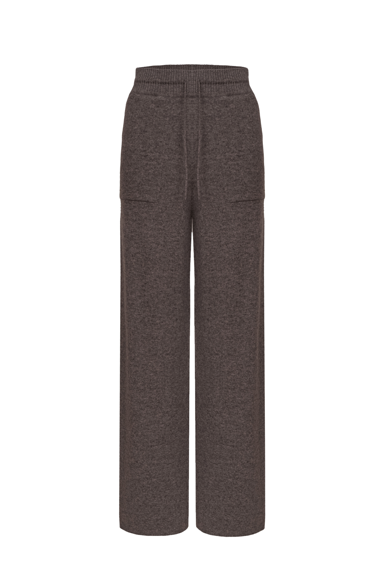 Трикотажные брюки из кашемира и шерсти. Модель свободного кроя с накладными карманами и эластичным поясом на кулиске в рубчик.