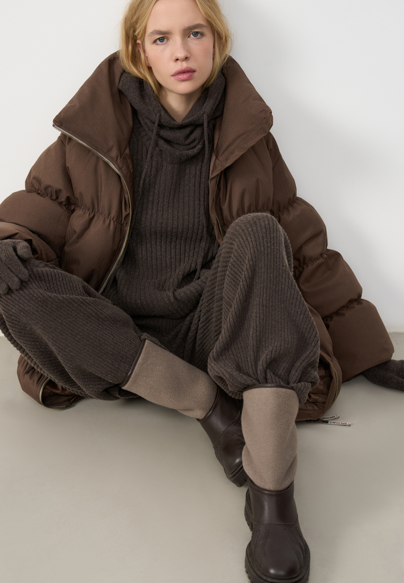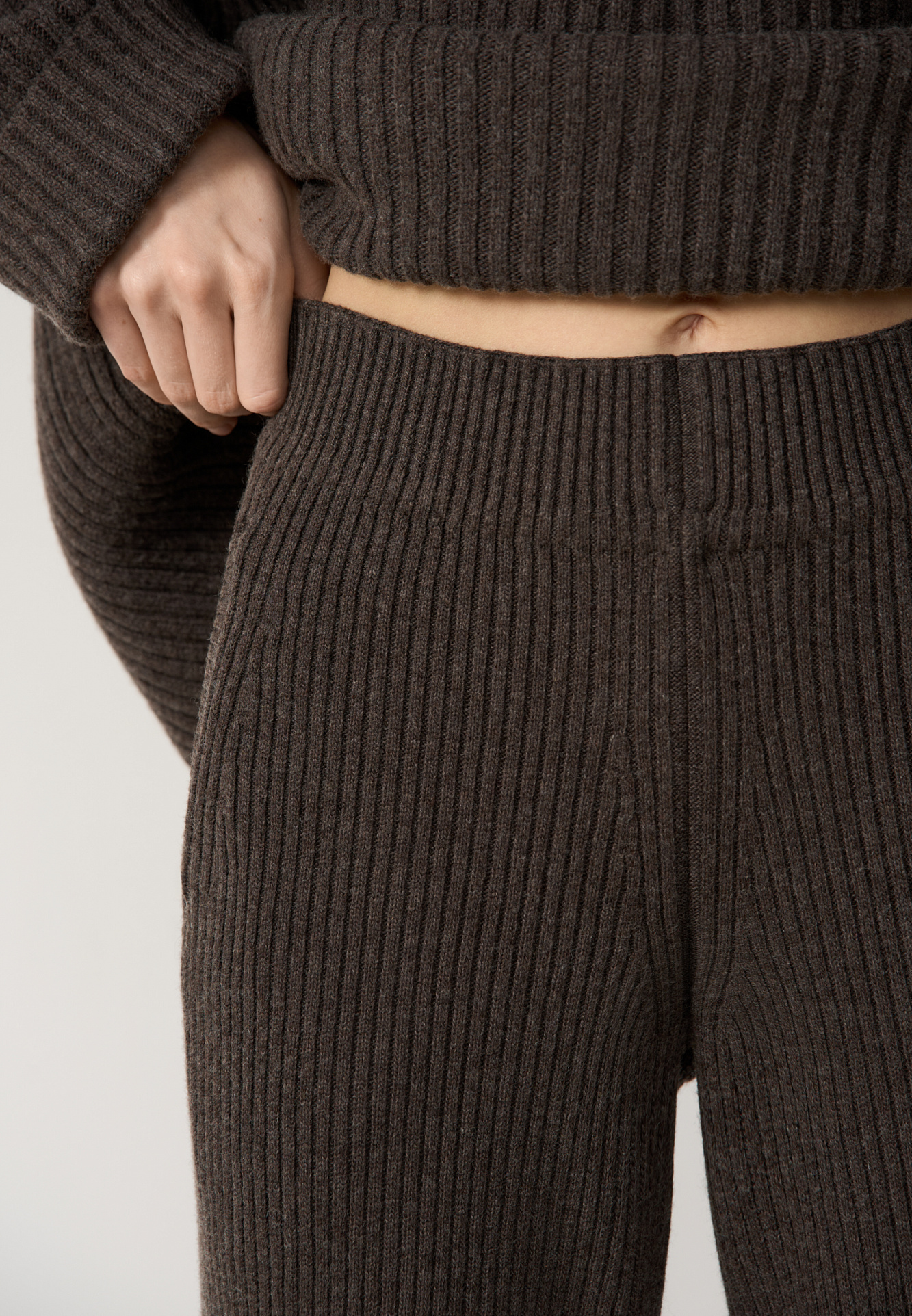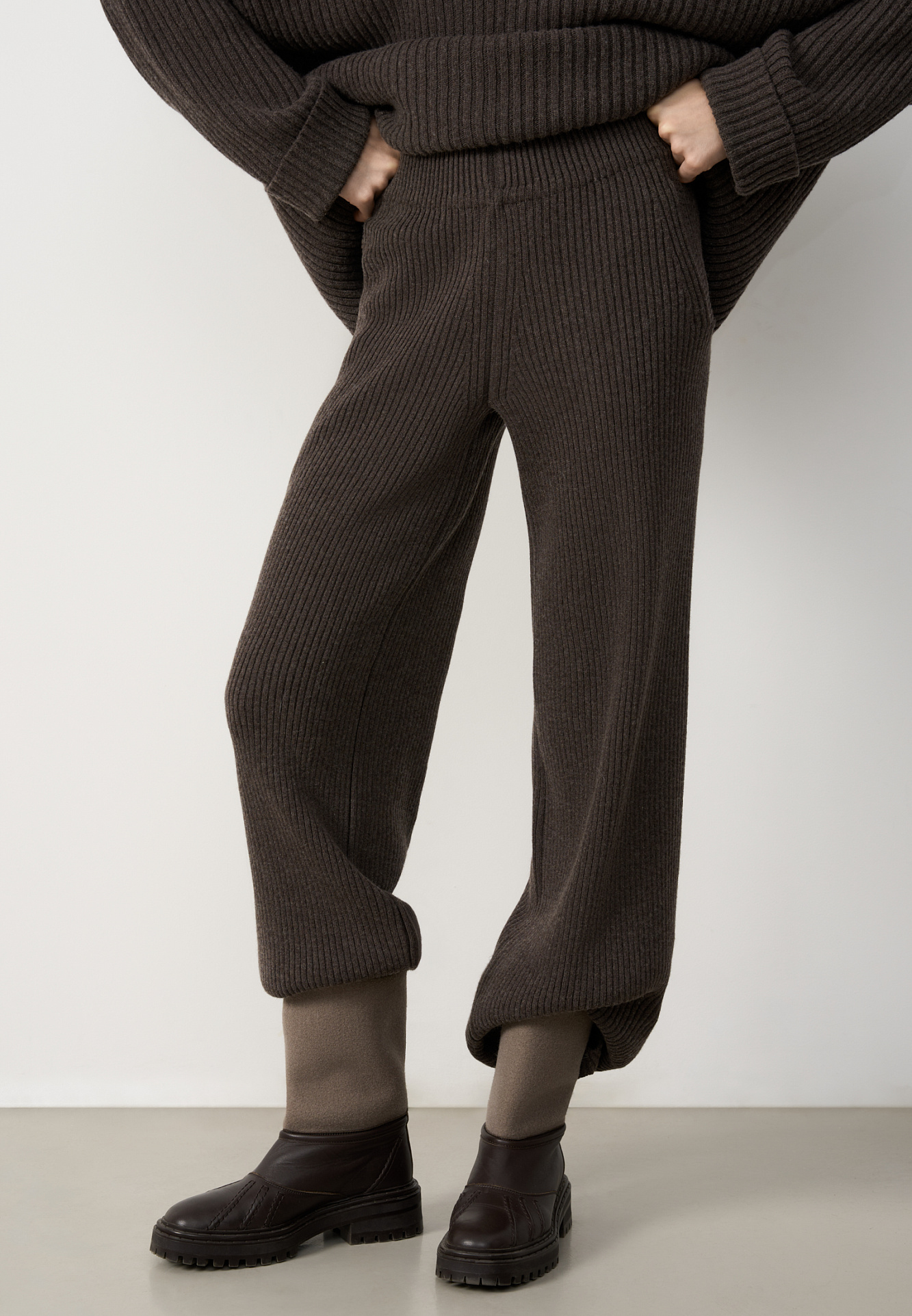 Широкие брюки из шерсти с добавлением кашемира. Модель прямого кроя с боковыми карманами. Пояс на эластичной резинке.