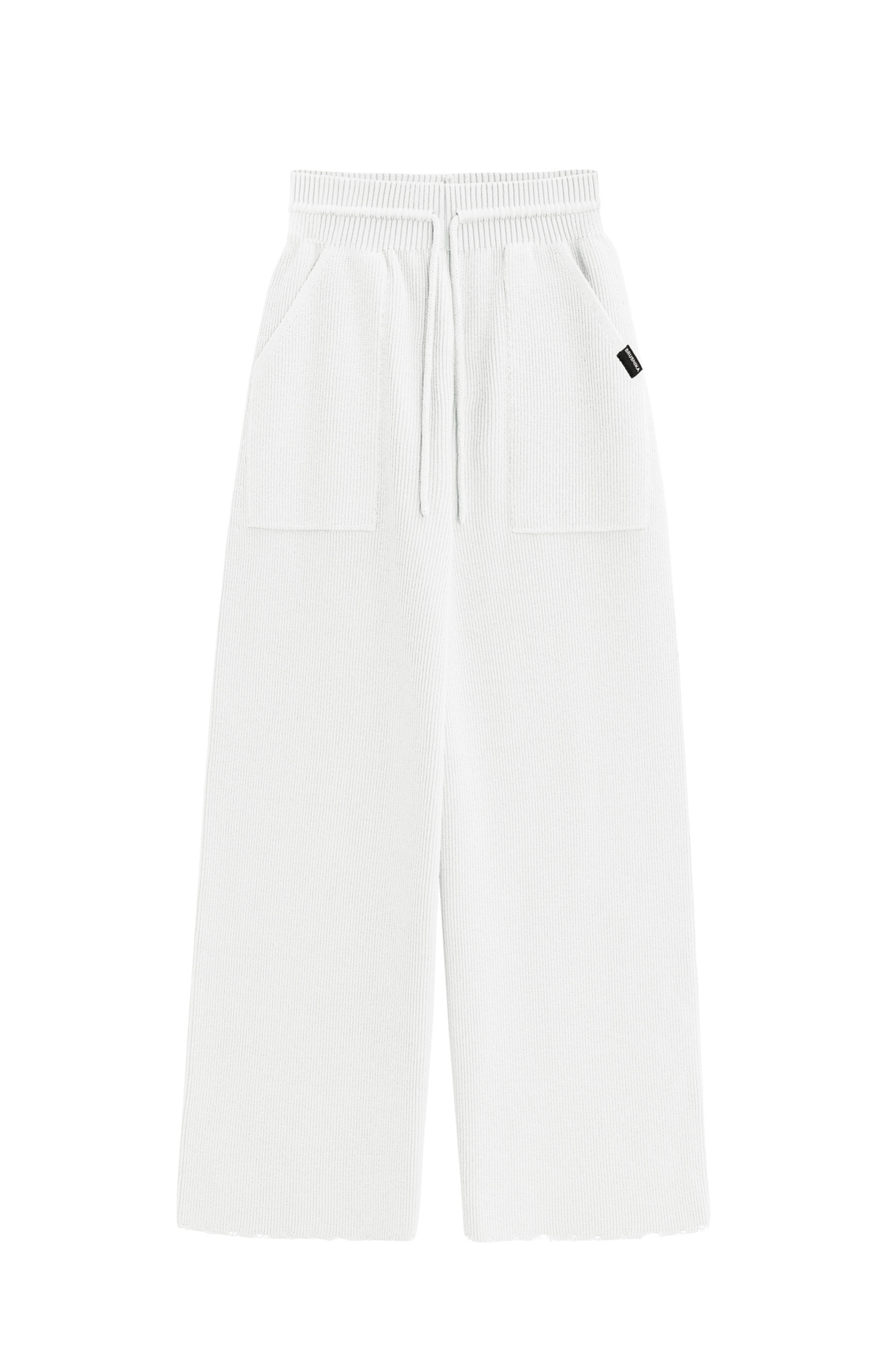 Свободные брюки с необработанным низом. Модель прямого силуэта с накладными карманами и эластичным поясом в рубчик на кулиске.