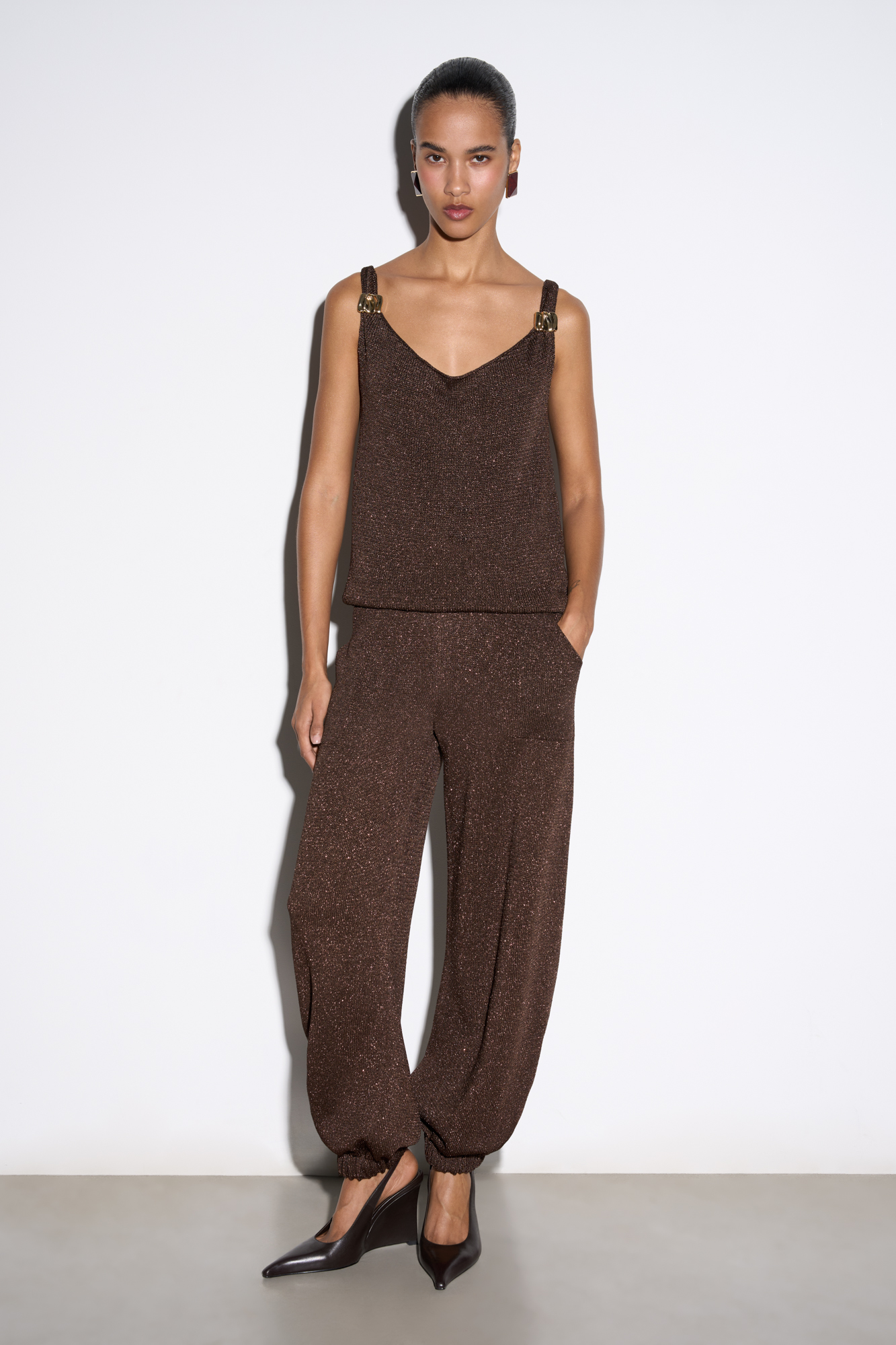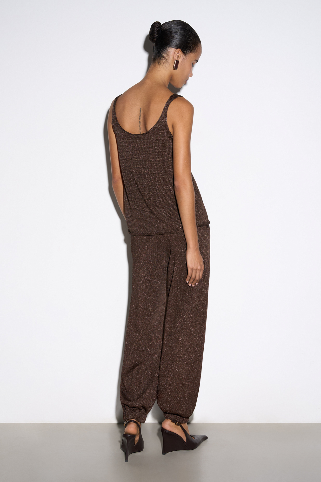 Трикотажные брюки-джоггеры с люрексом