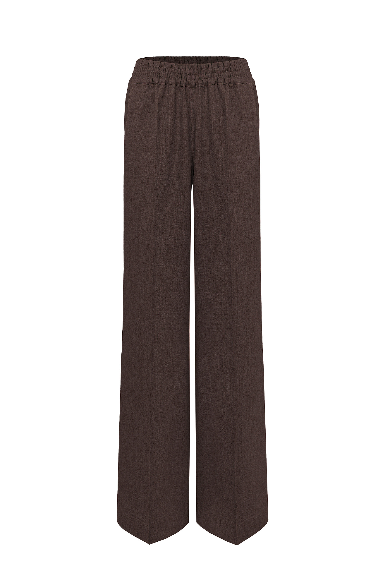 Широкие прямые брюки из полушерсти. Модель с эластичным поясом на резинке и карманами.