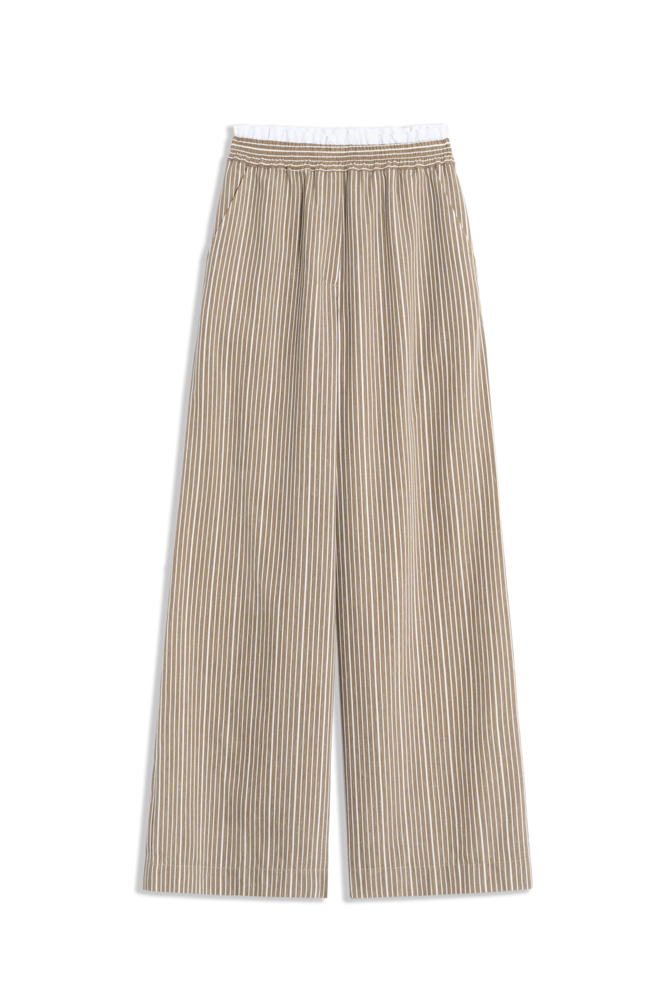 Широкие полосатые брюки из вискозы и льна. Модель на эластичной резинке