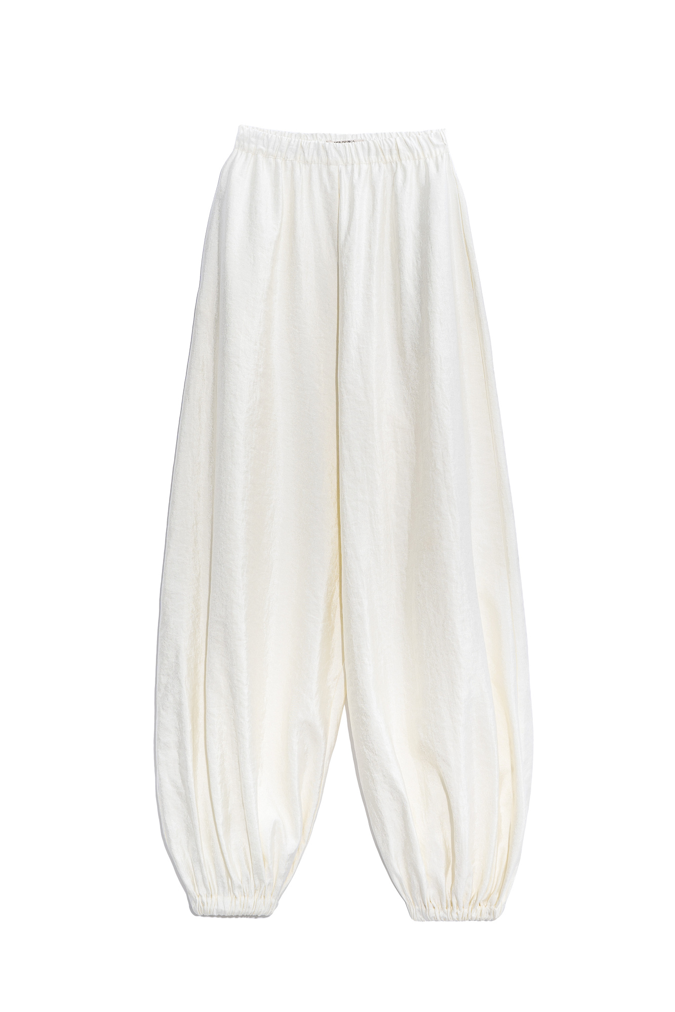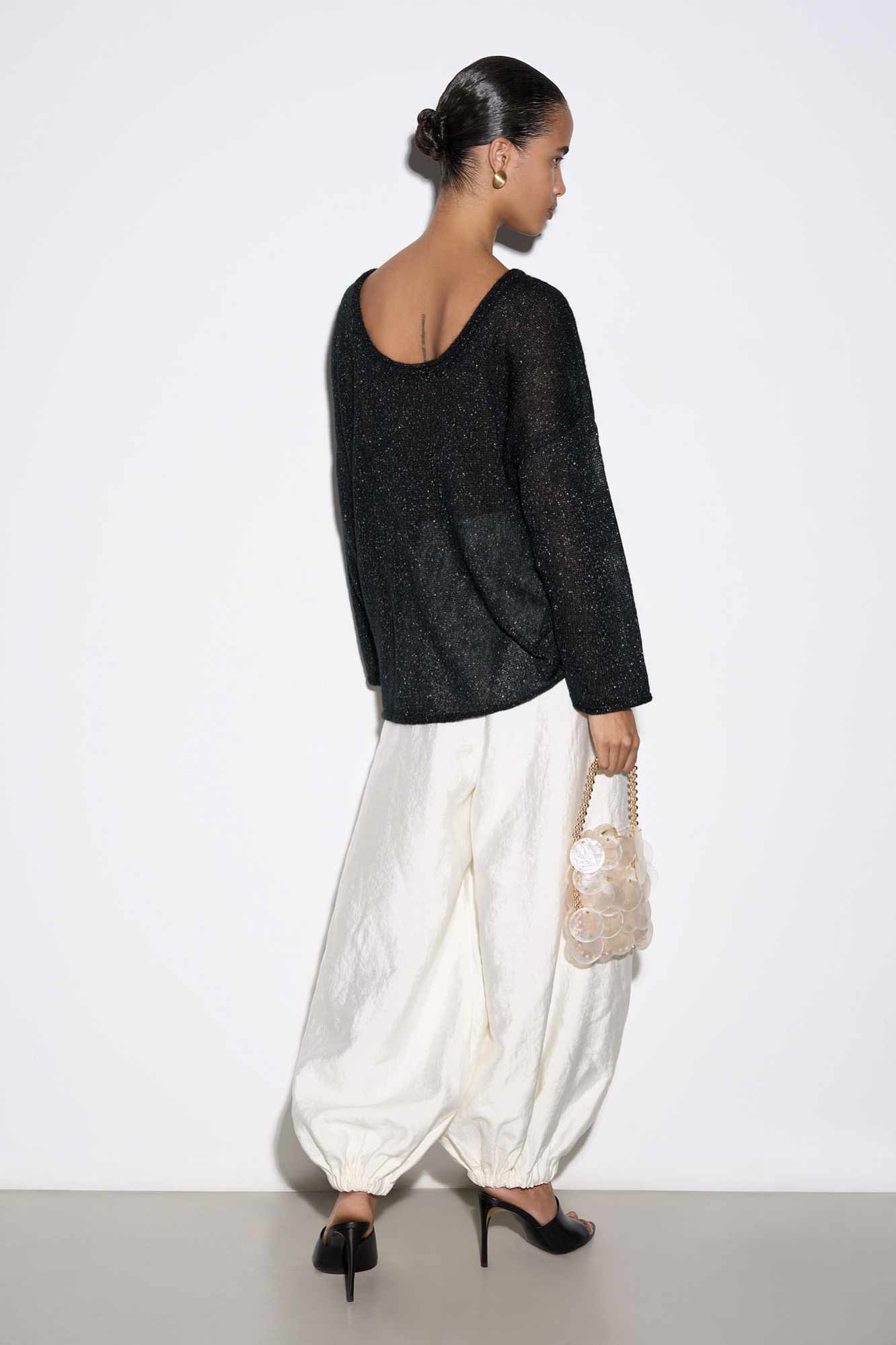 Широкие брюки-джоггеры из текстурной вискозы. Модель свободного силуэта с поясом на резинке.