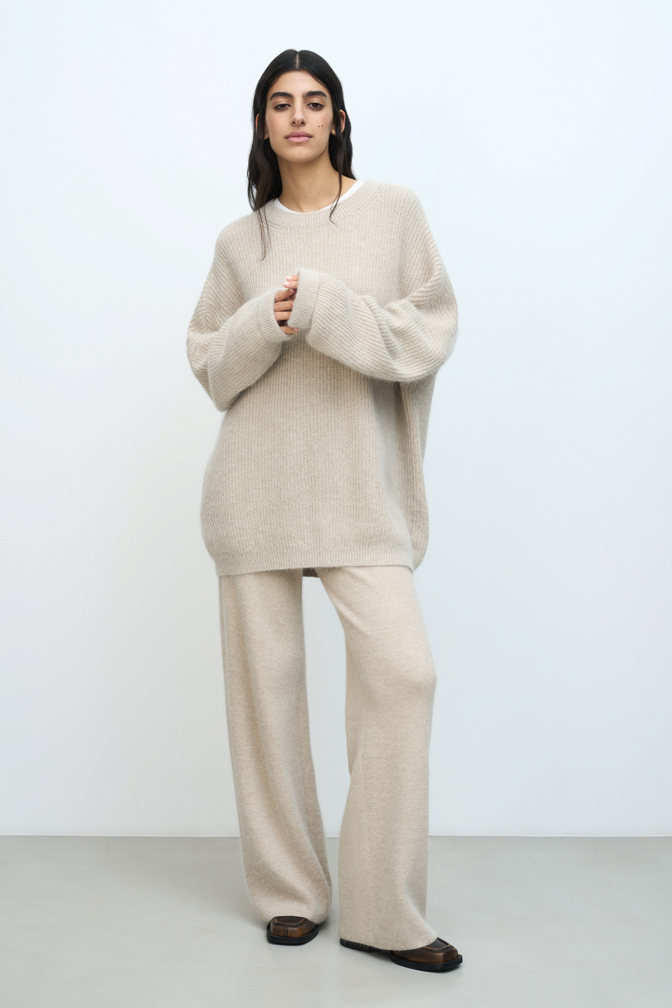 Трикотажные брюки из смесовой шерсти. Модель свободного кроя со средней посадкой, боковыми карманами и эластичным поясом в рубчик.