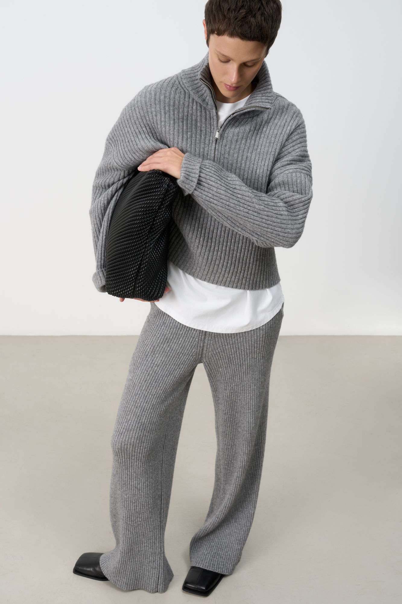 Широкие брюки из шерсти с добавлением кашемира. Модель прямого кроя с боковыми карманами. Пояс на эластичной резинке.