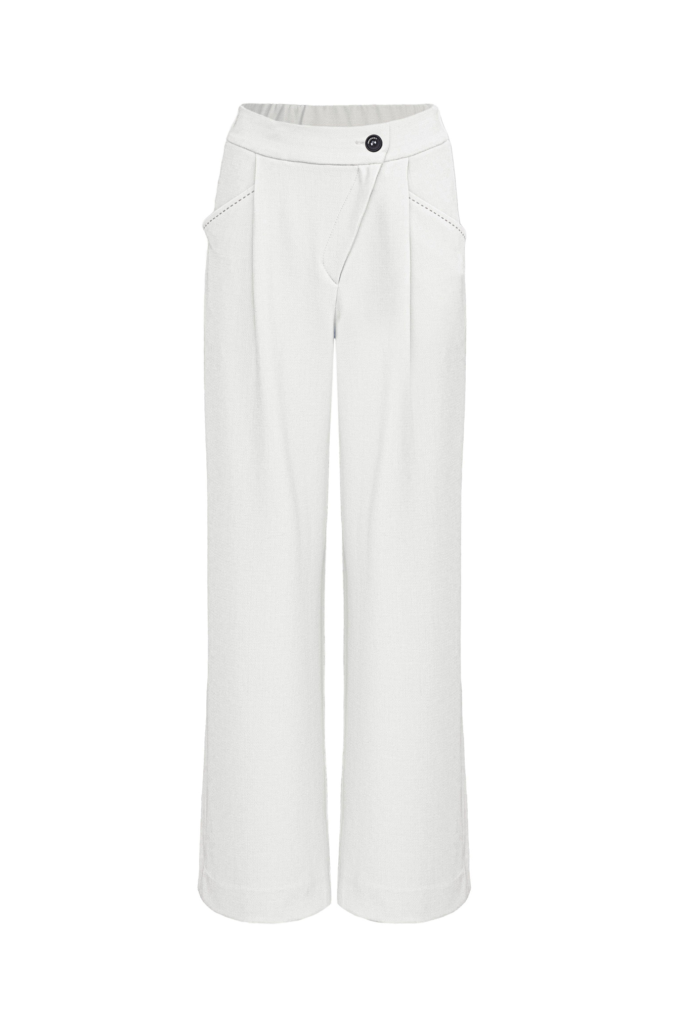 Широкие брюки с отстрочкой из поливискозы с высокой посадкой. Косая застежка на молнию и пуговицу, боковые карманы. Дополнить образ можно жилетом и жакетом.