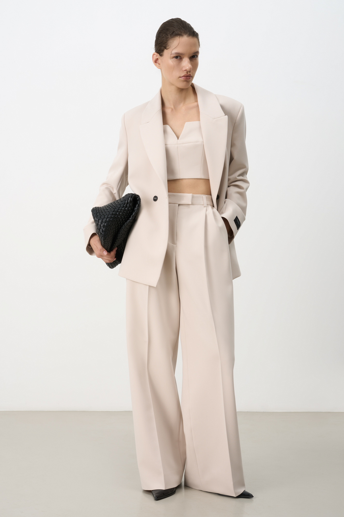 Классические брюки палаццо из вискозы. Модель прямого кроя с потайной застежкой на молнию.