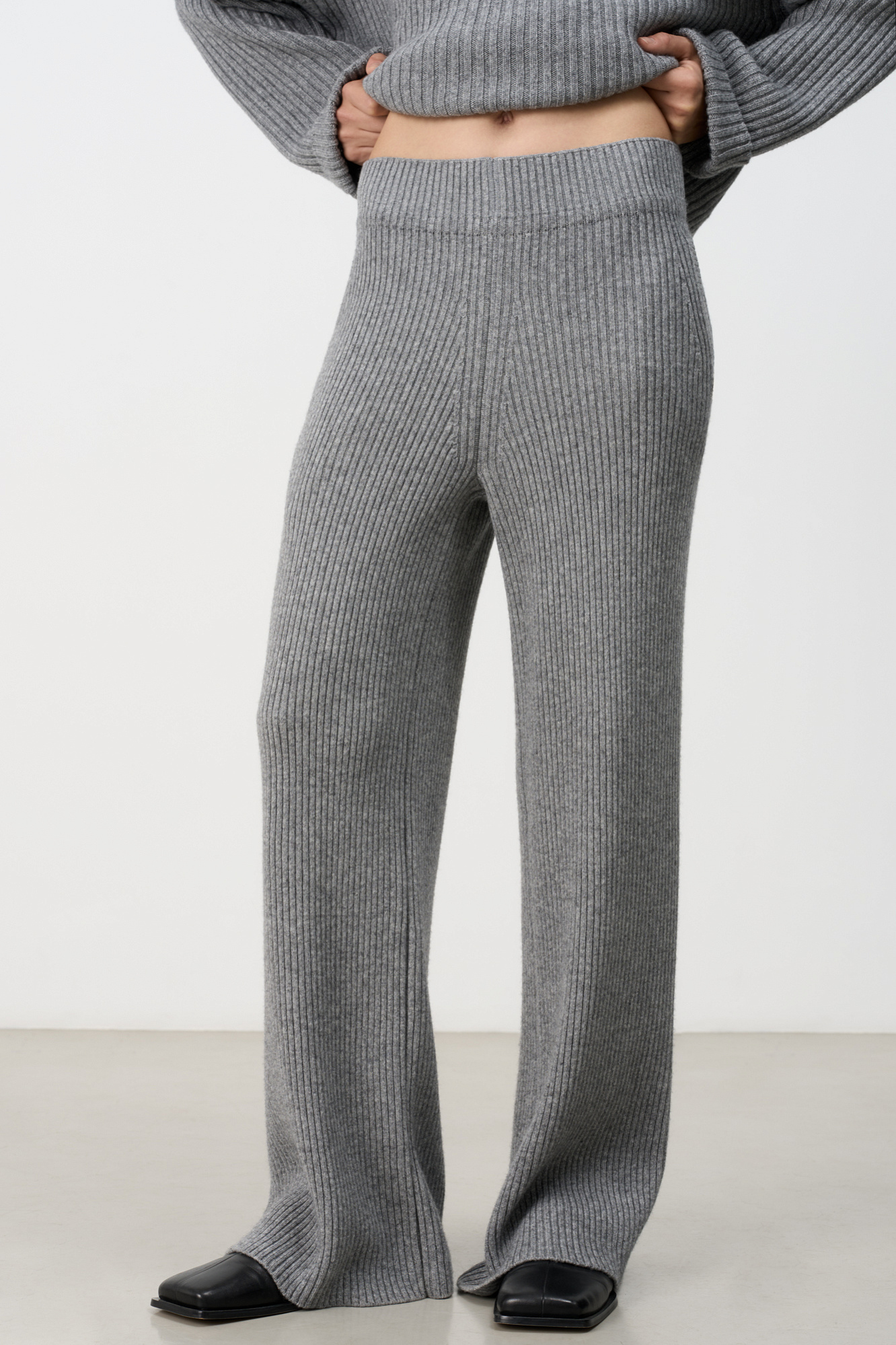 Широкие брюки из шерсти с добавлением кашемира. Модель прямого кроя с боковыми карманами. Пояс на эластичной резинке.