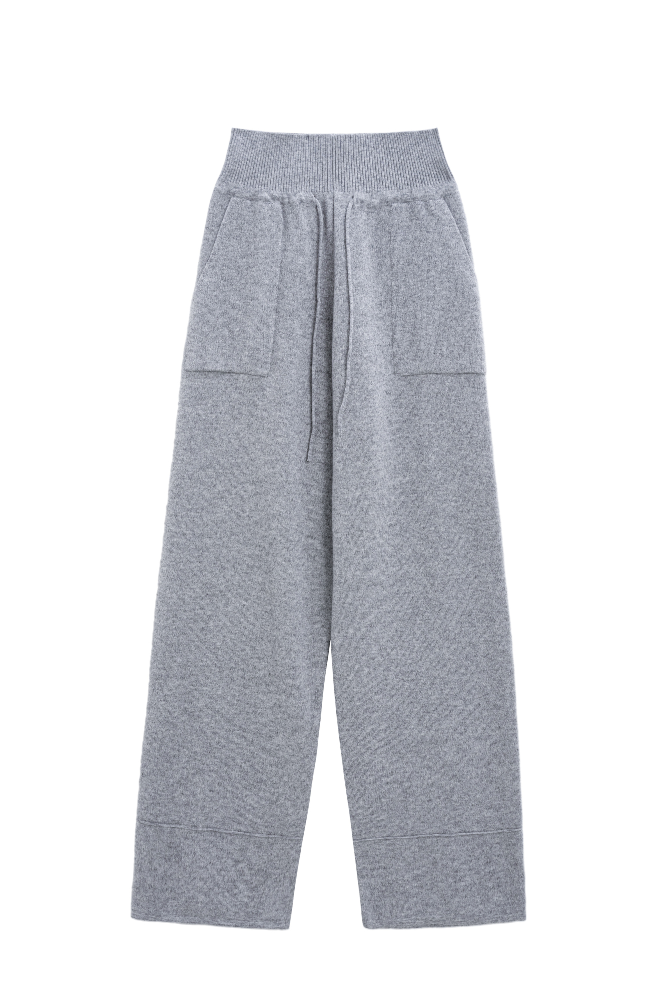 Трикотажные брюки из кашемира, шерсти и вискозы. Модель свободного силуэта со средней посадкой, широким эластичным поясом в рубчик и большими накладными карманами.