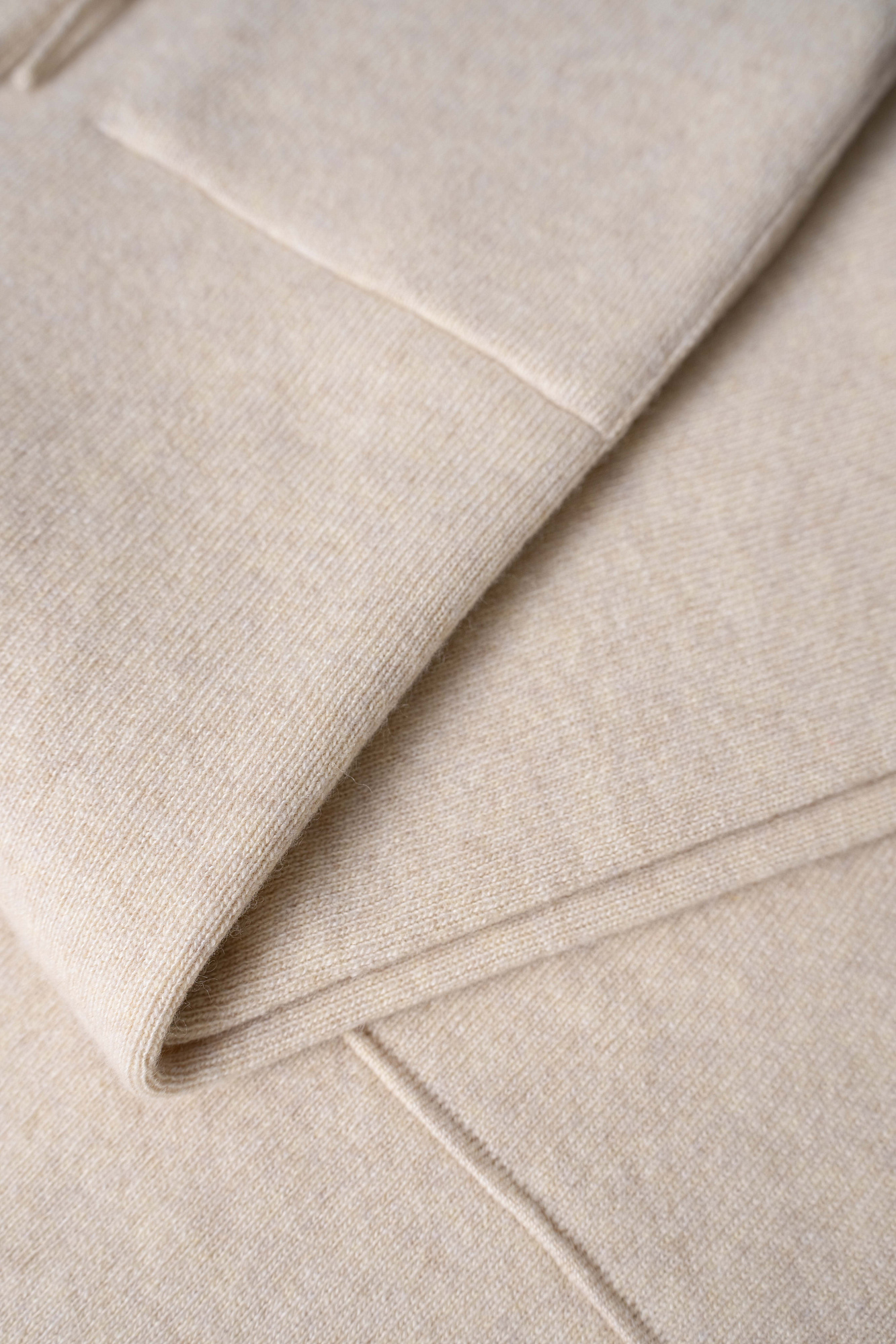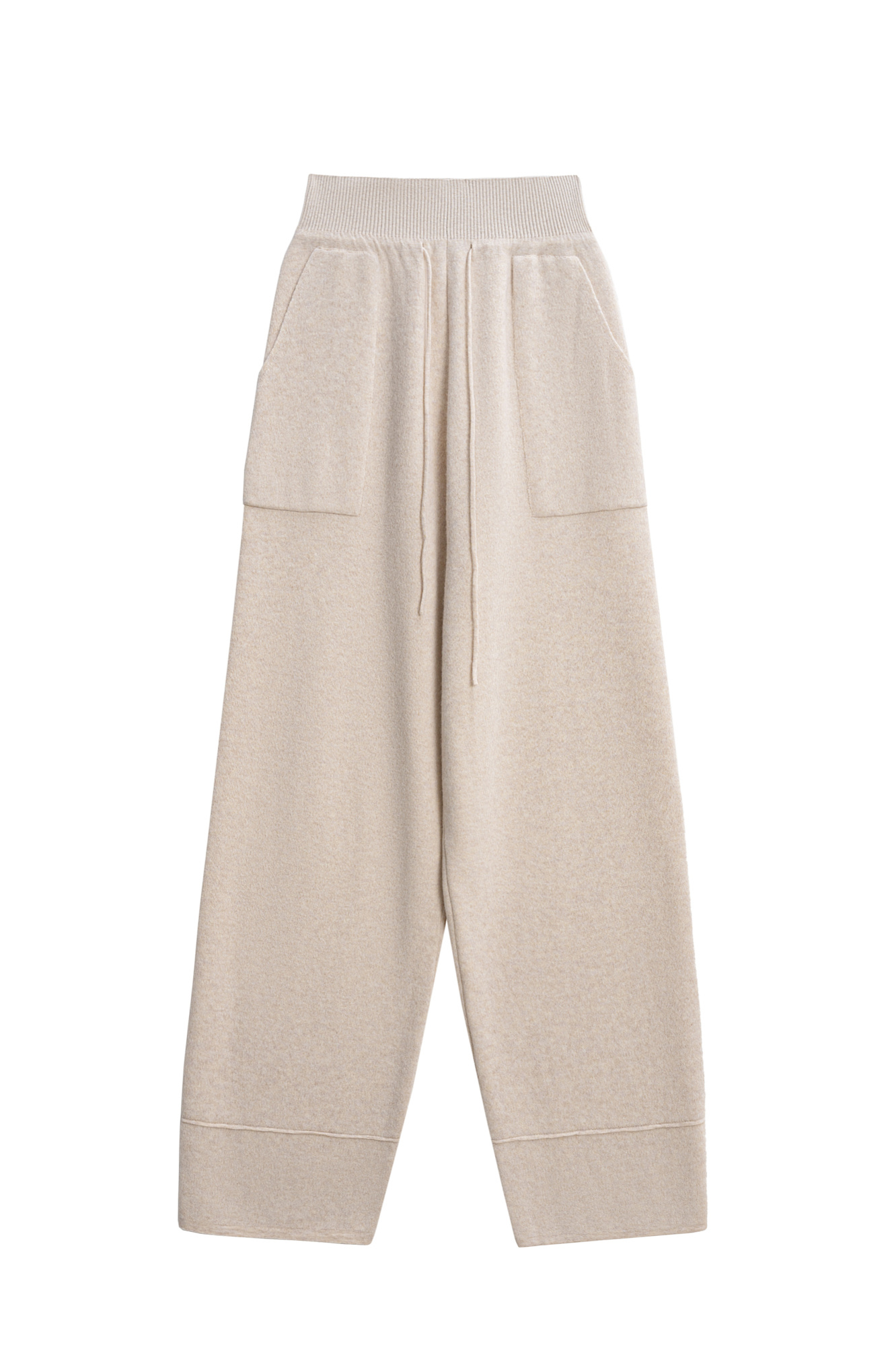 Трикотажные брюки из кашемира, шерсти и вискозы. Модель свободного силуэта со средней посадкой, широким эластичным поясом в рубчик и большими накладными карманами.