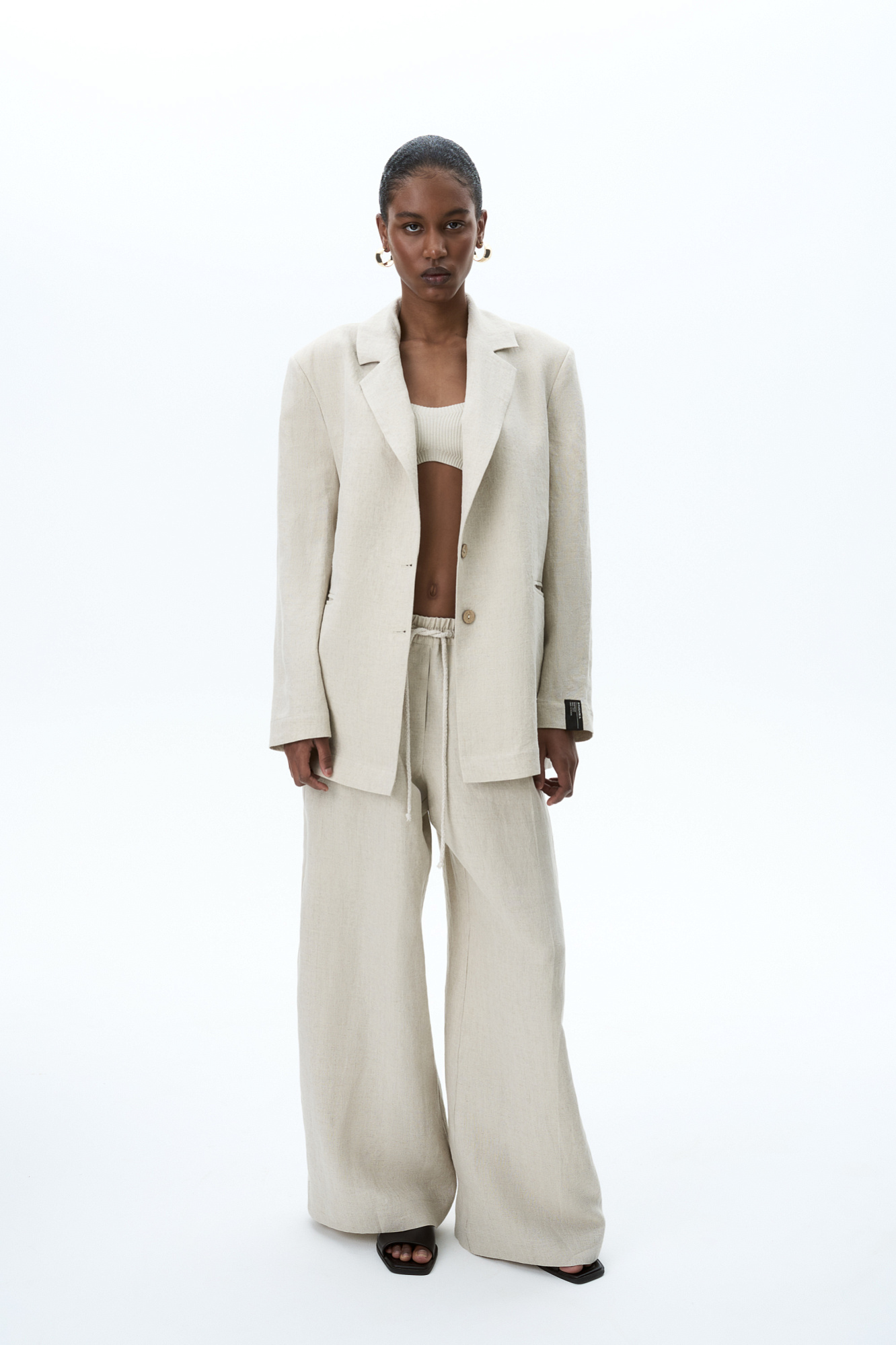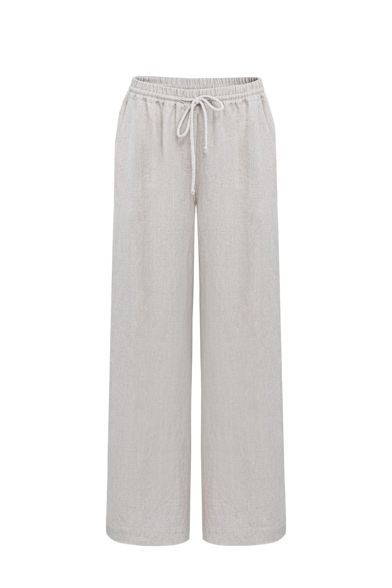 Широкие брюки, выполненные из конопляной ткани. Модель прямого кроя с боковыми карманами и эластичным поясом на кулиске. Использование конопляной ткани придает изделию особую прочность и износостойкость, а натуральное происхождение подчеркивает экологичность данной модели.