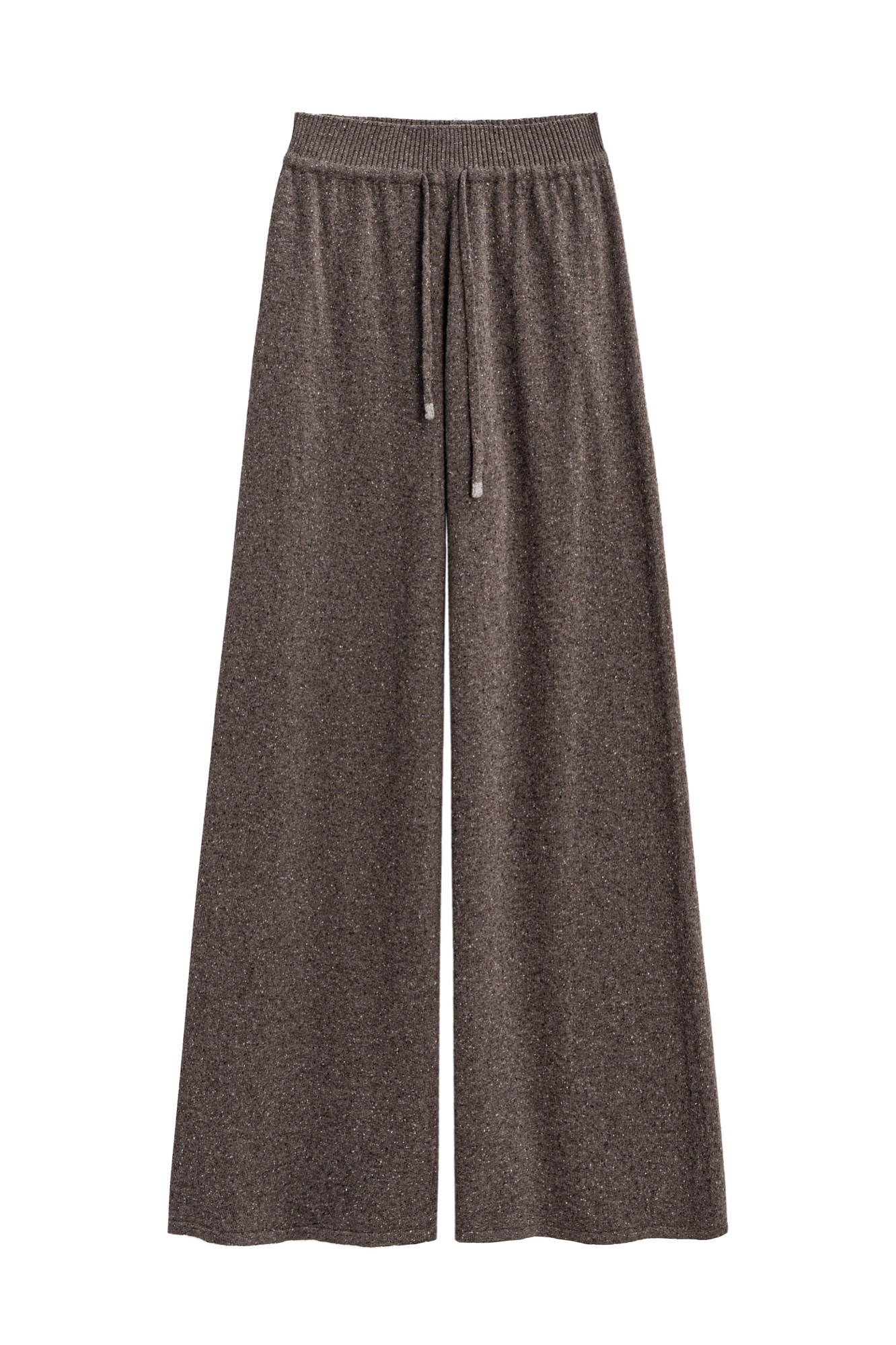 Трикотажные меланжевые брюки из мягкой шерсти с добавлением шелка и вискозы. Модель прямого силуэта с широким поясом на кулиске. Можно дополнить жилетом из такой же пряжи.