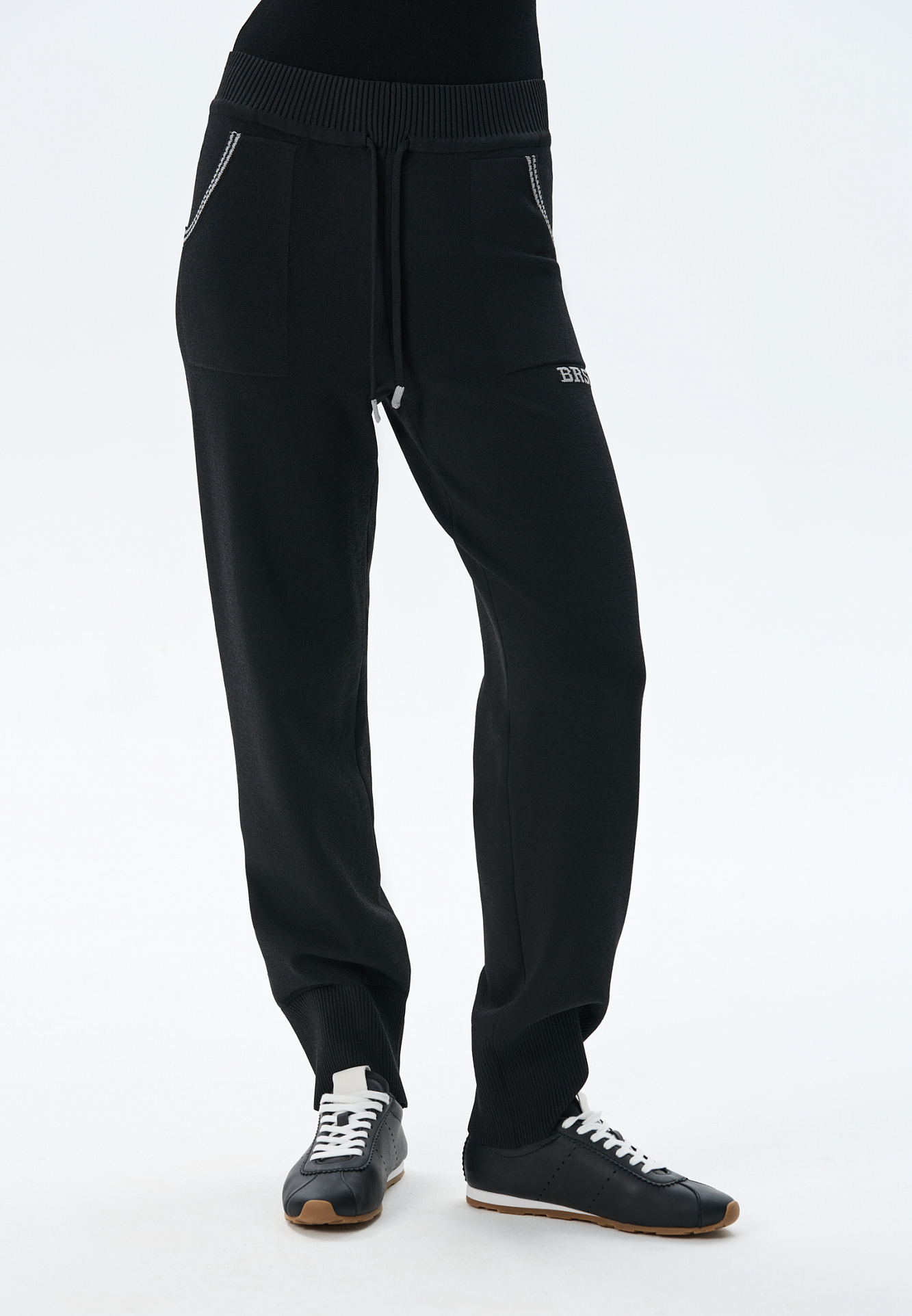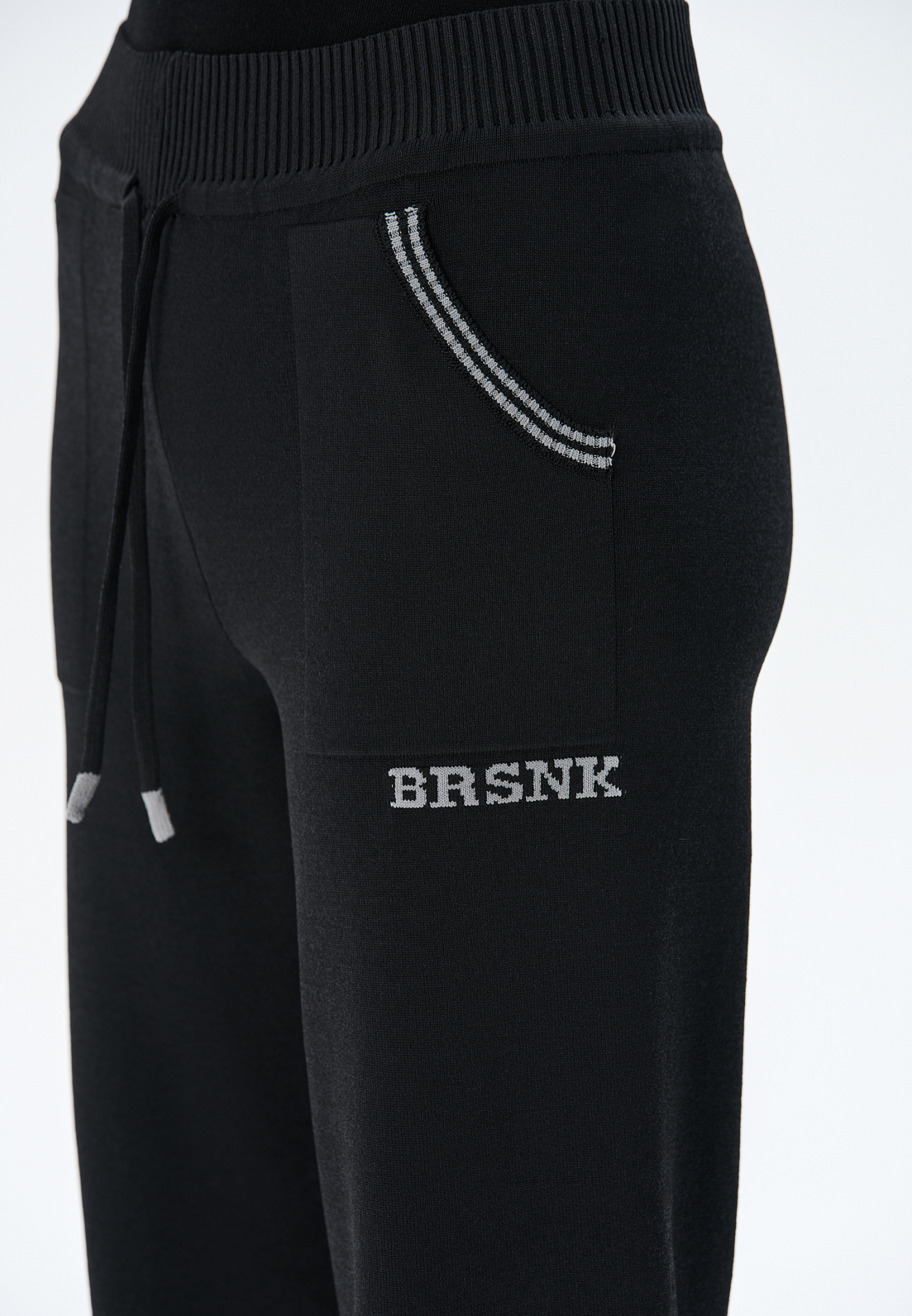 Трикотажные брюки из вискозы с добавлением эластана. Модель выполнена в спортивном стиле, с широким эластичным поясом на кулиске, боковыми карманами и широкими манжетами на резинке.