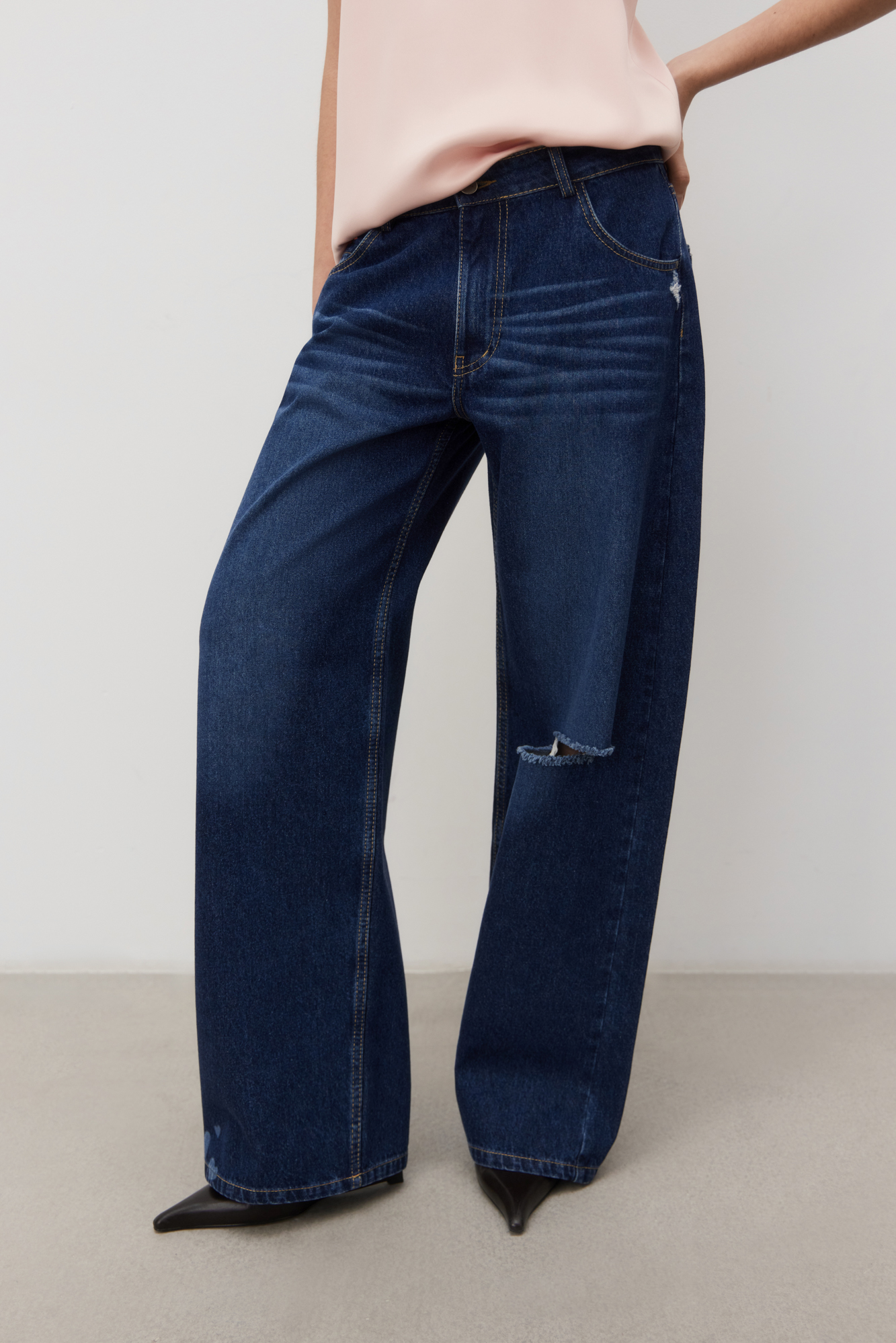 Прямые джинсы с принтом в виде сердечек