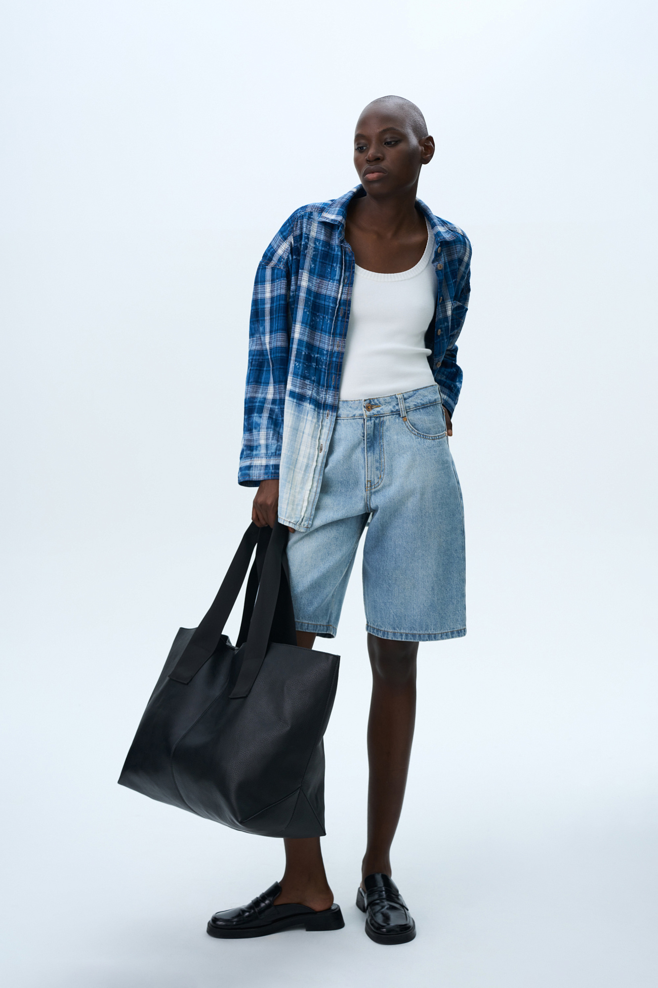 Джинсовые шорты-бермуды из 100% хлопка. Модель прямого кроя, со средней посадкой. Шлевки на поясе для ремня. Пять карманов. Застежка на молнию и металлическую пуговицу.